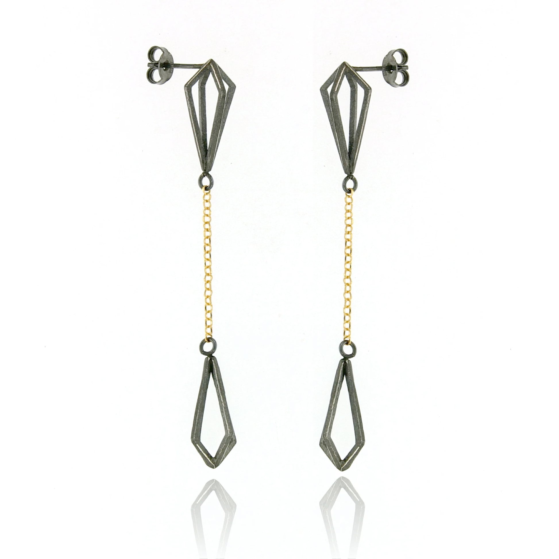Oxidized Sterling Silver & Vermeil Kites and Chain Earrings