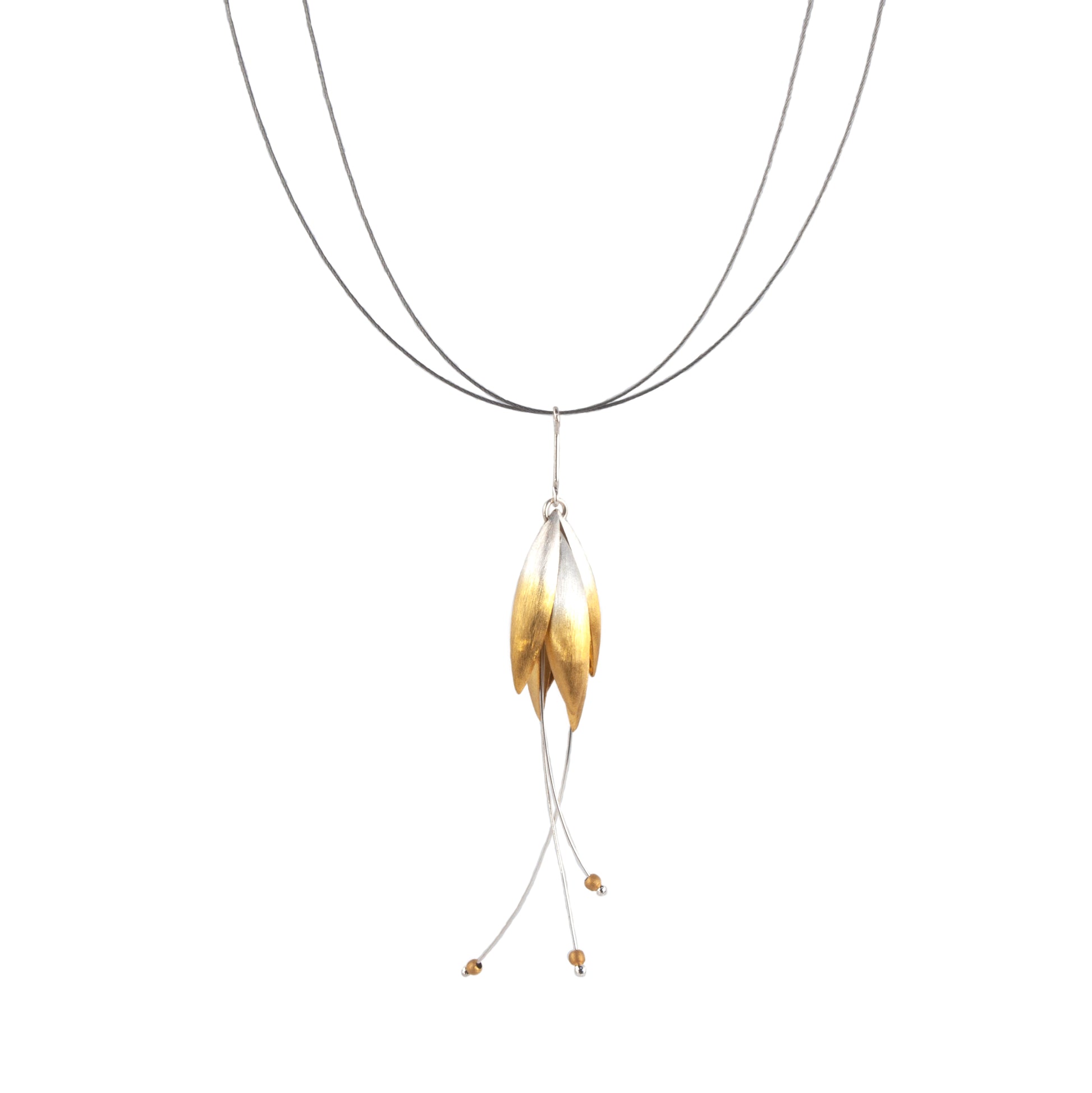 Gold Plates Sterling Silver "Tulip" Pendant, beautifully draped on a 17" doubled wire.