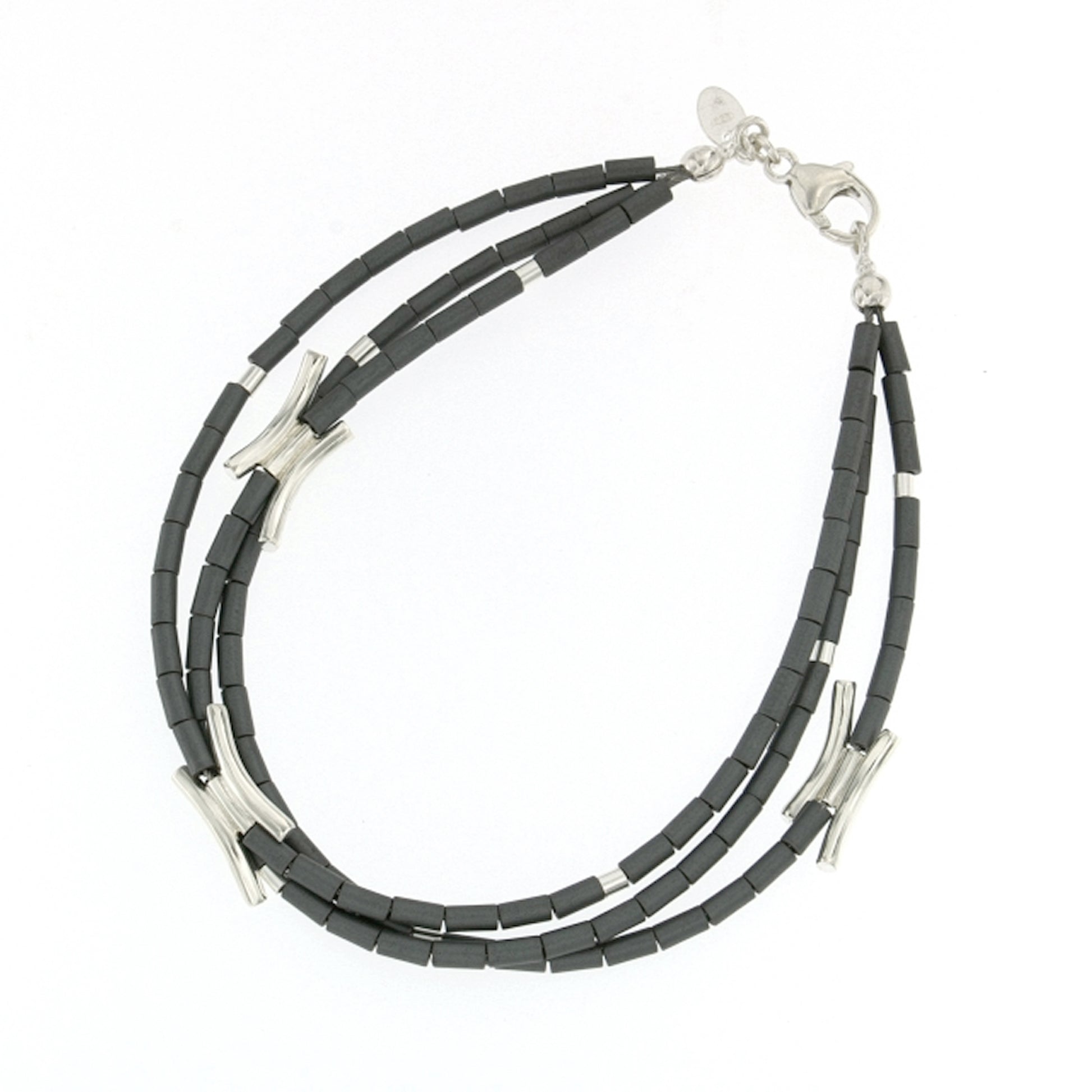 Hematite triple-strand bracelet with Sterling Silver accents.