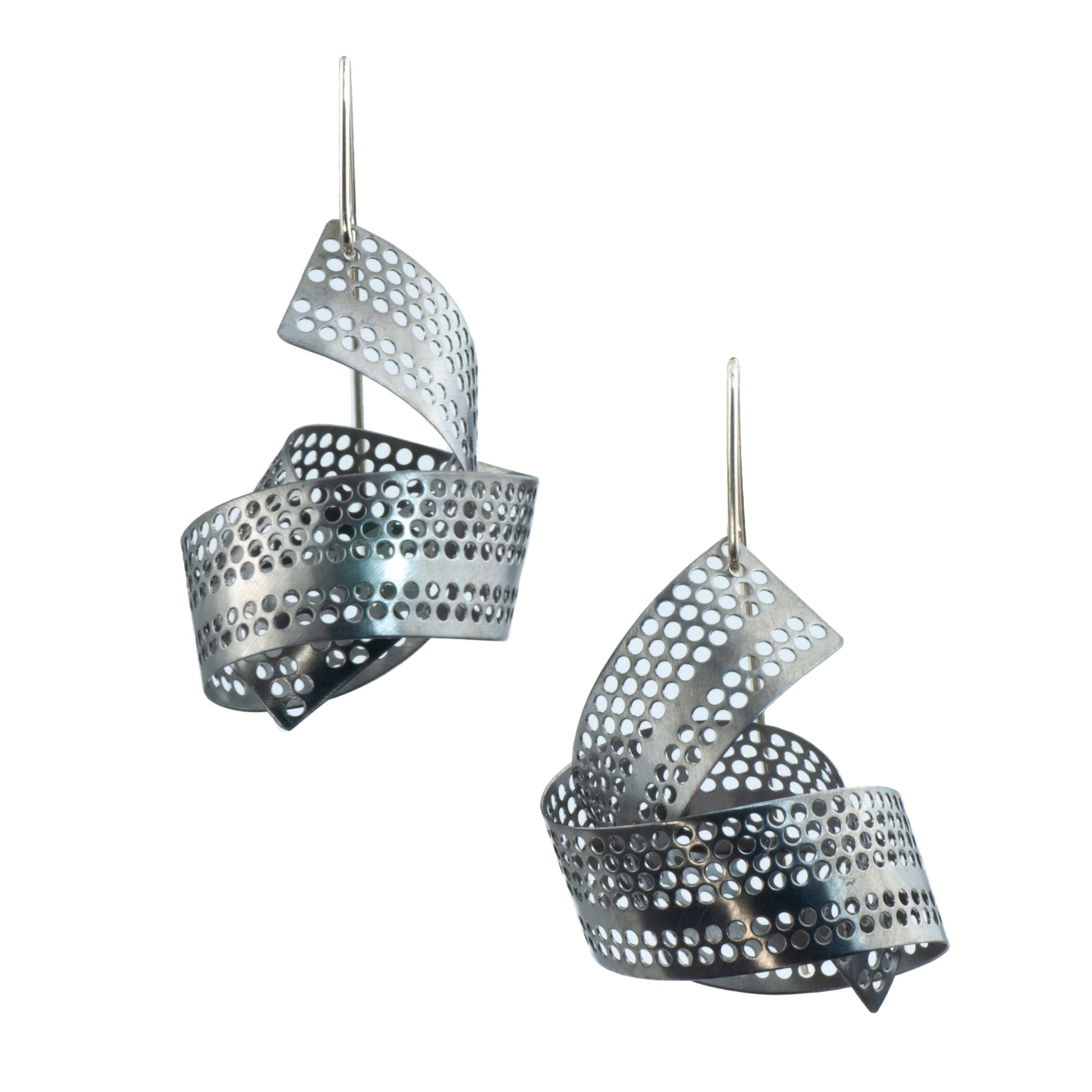 Sterling Silver Ruthenium Screen Ribbon Earrings