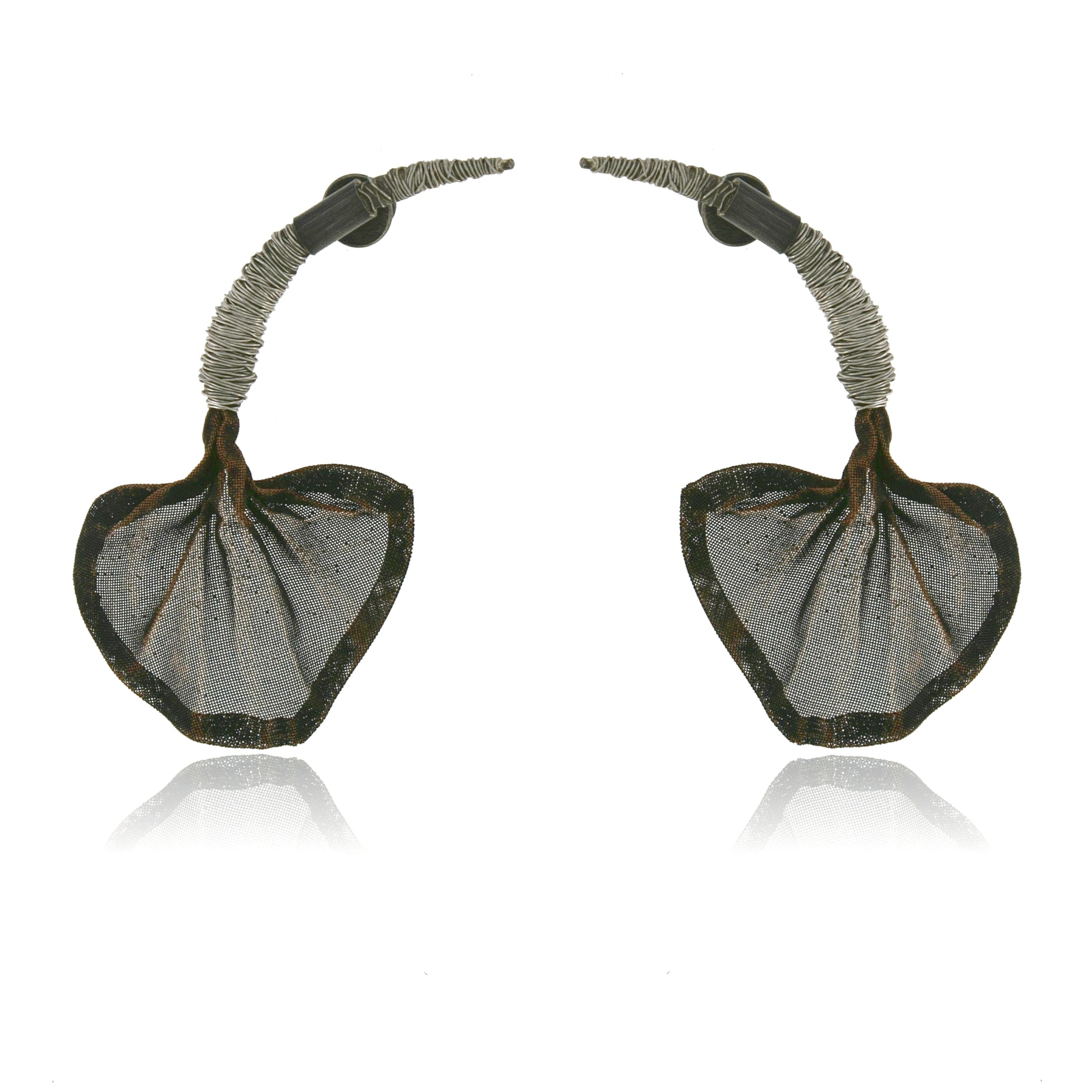 Brown Stainless Steel Mesh and Oxidized Sterling Silver