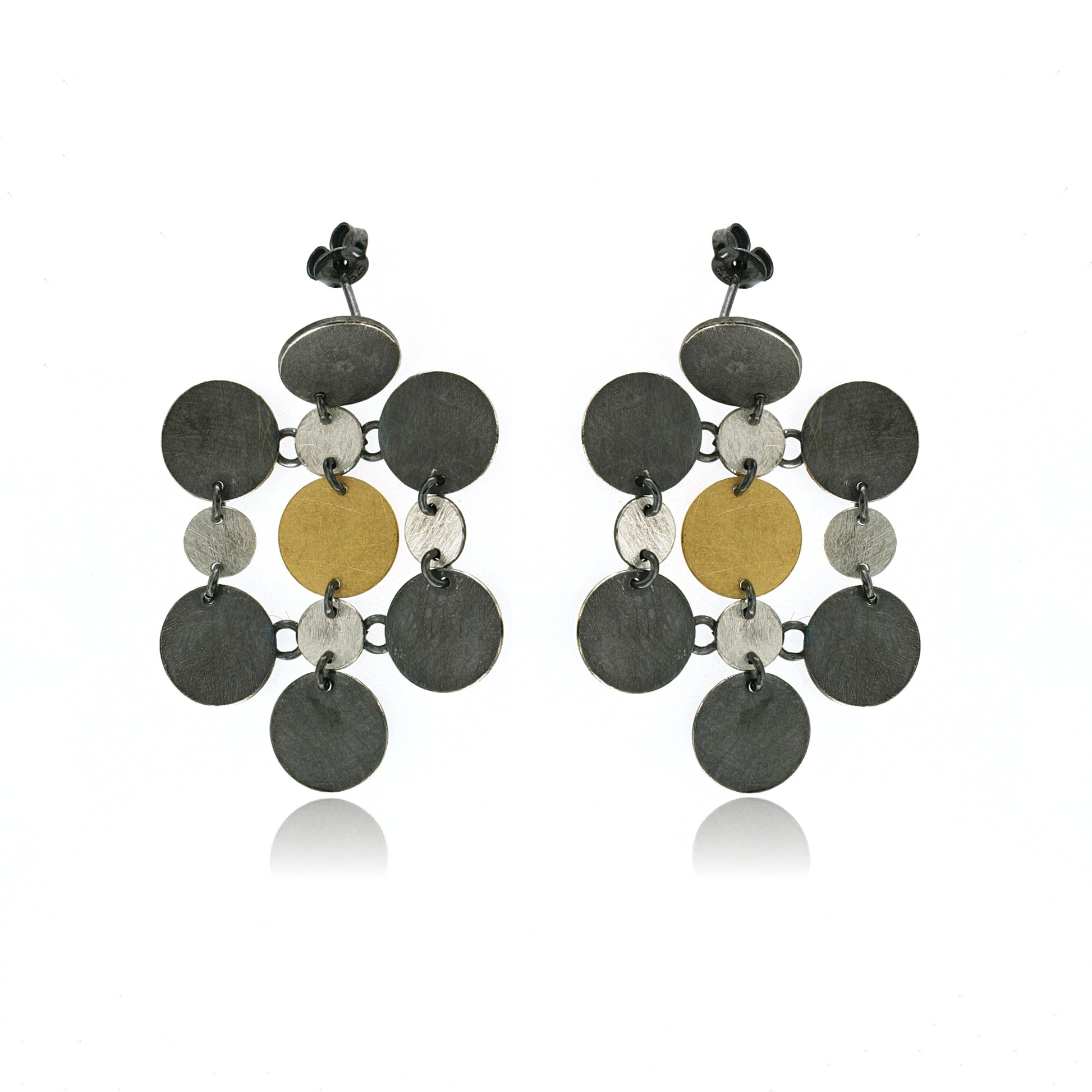 Gold-plated & Oxidized Sterling Silver circles on posts.