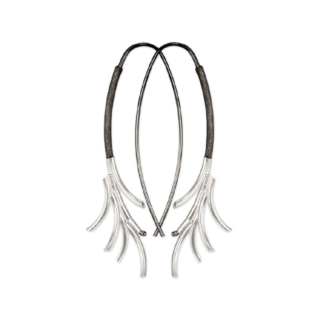 Oxidized & Sterling Silver Clustered Feathered Tube Earrings