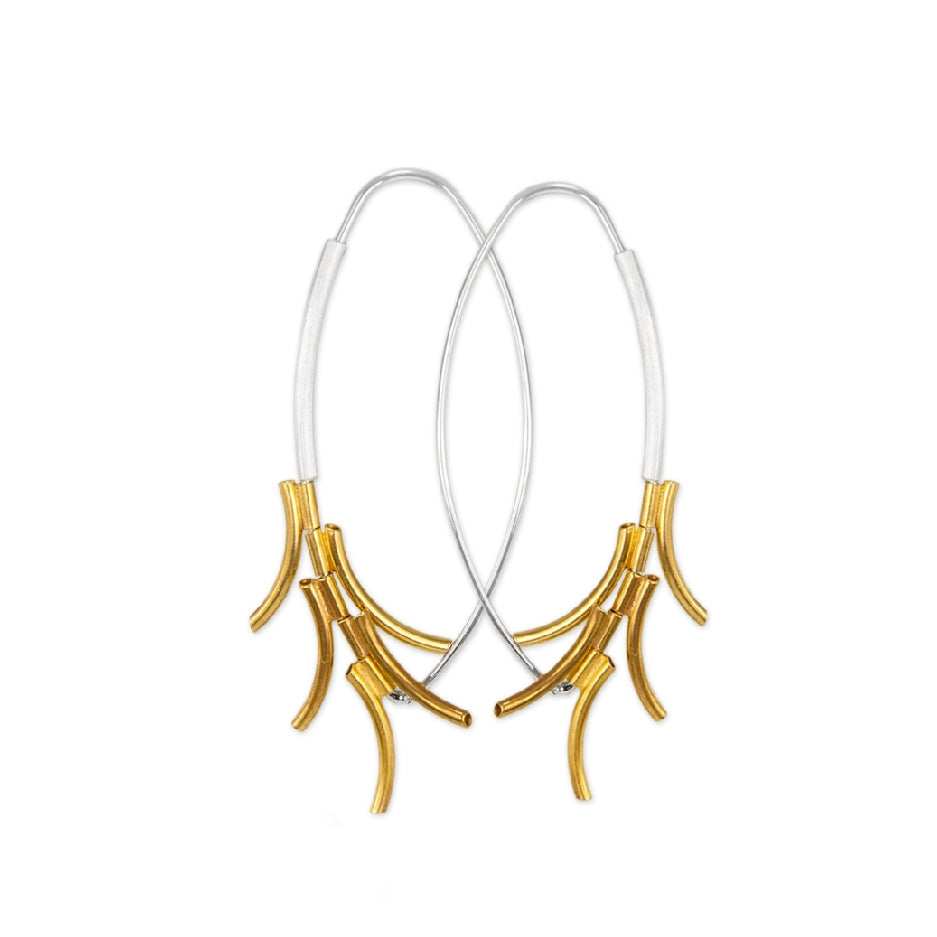 Vermeil & Sterling Silver Clustered Feathered Tube Earrings