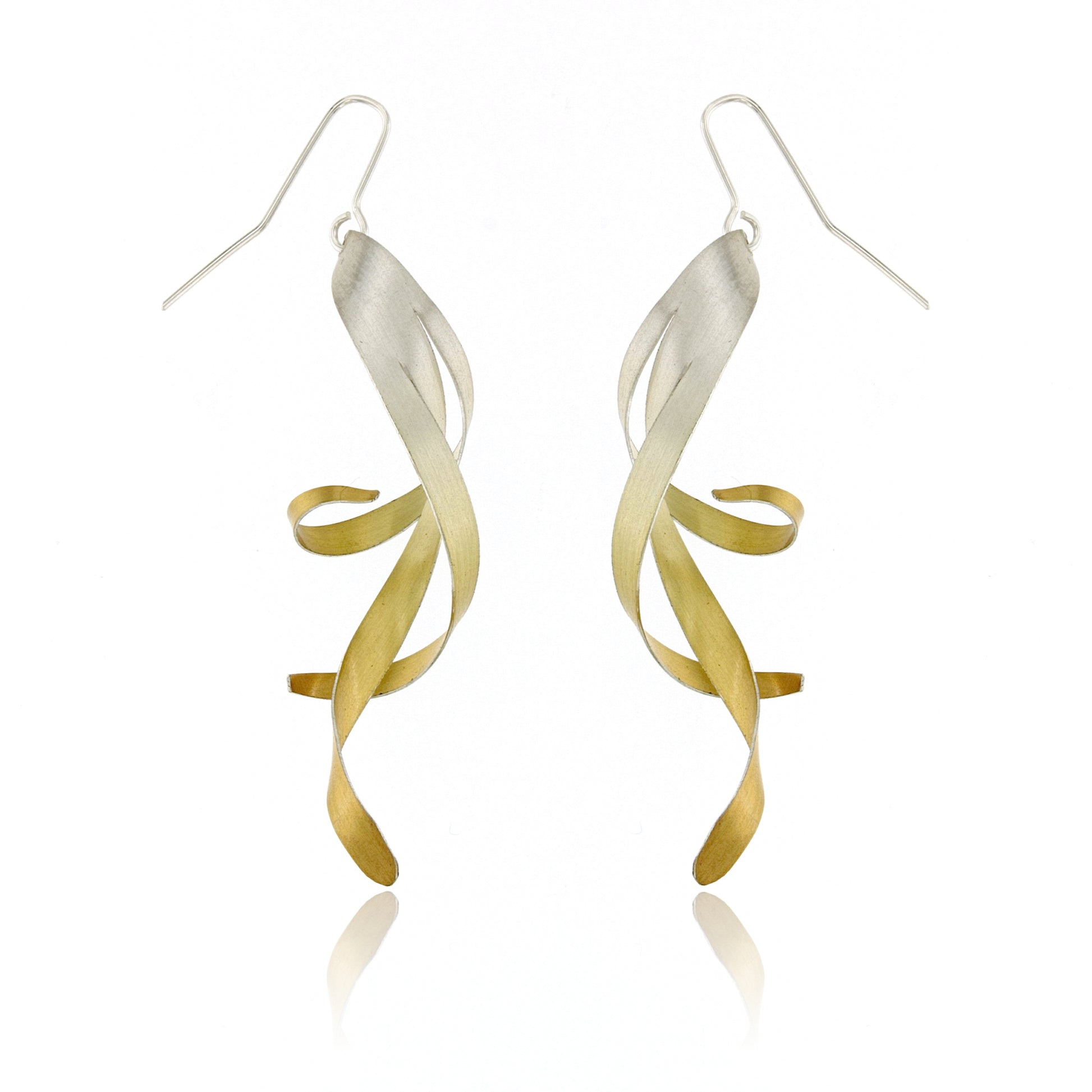 Gold-plated sterling silver twisted ribbons on ear wires, with a beautiful textured finish.