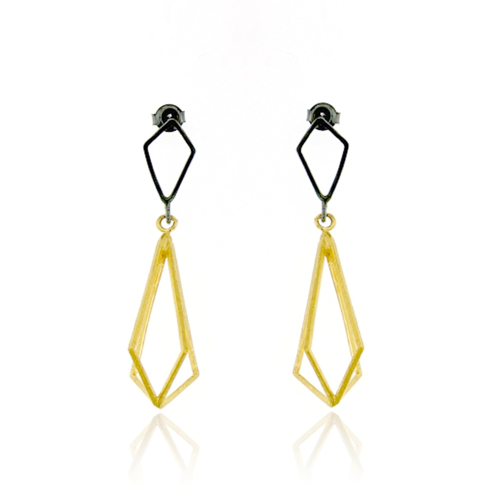 Gold-plated Sterling Silver 3d kites dropped from Oxidized Sterling kite posts.