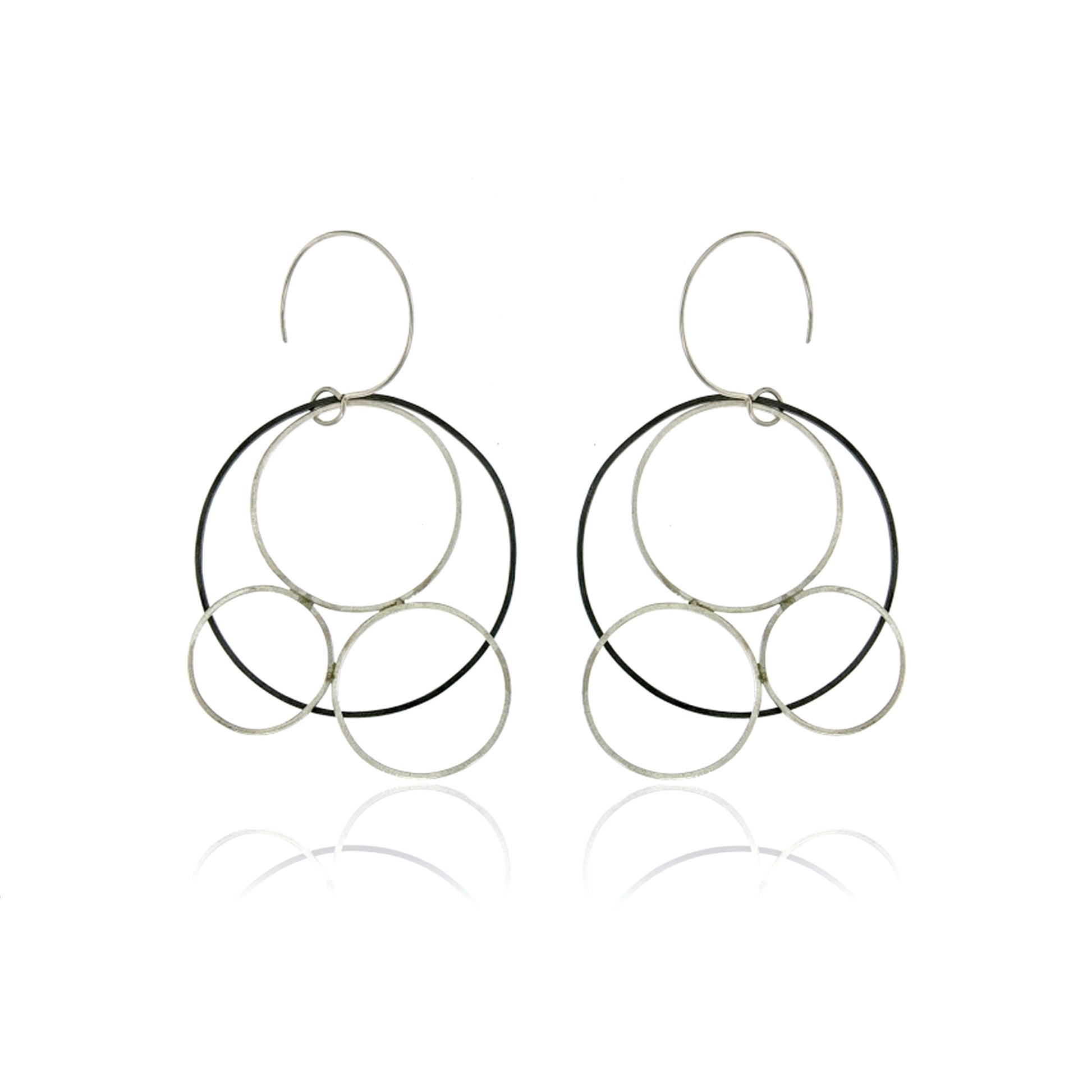 Three Sterling Silver circles overlaying a large Oxidized Sterling circle on circular wires.