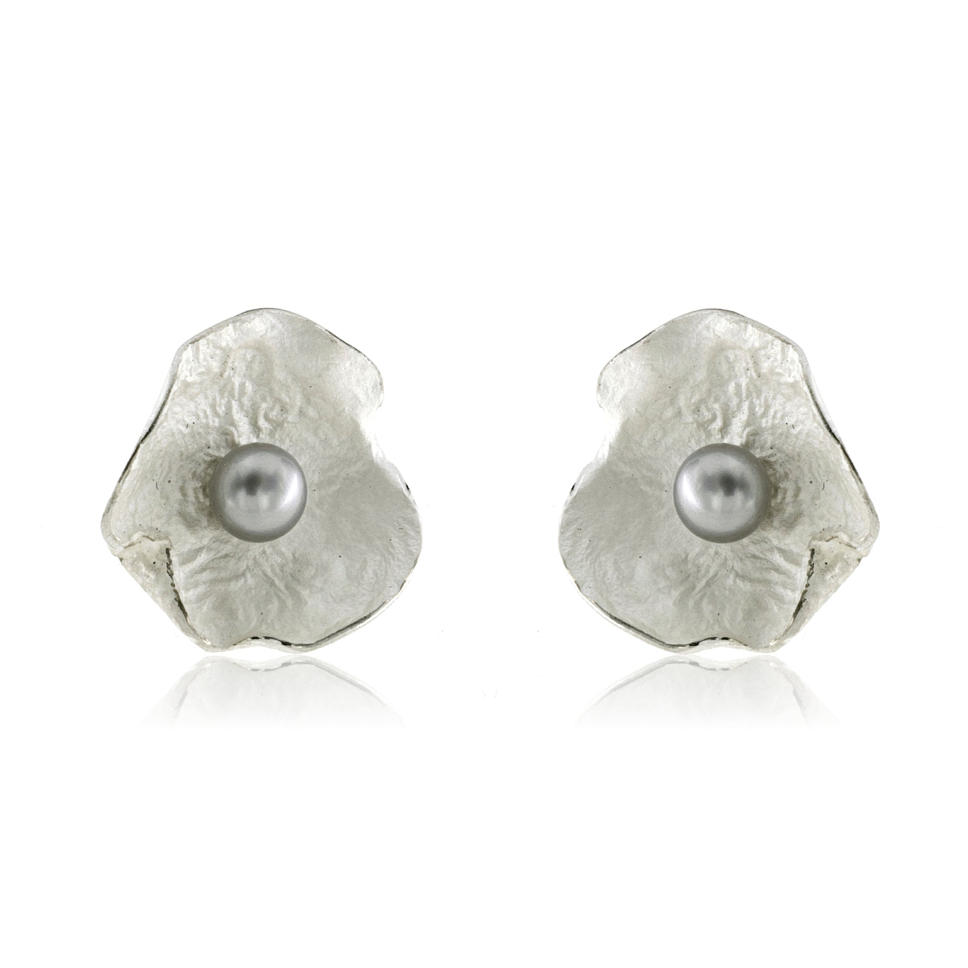 White-finished Sterling Silver Petals, featuring a center gray pearl.