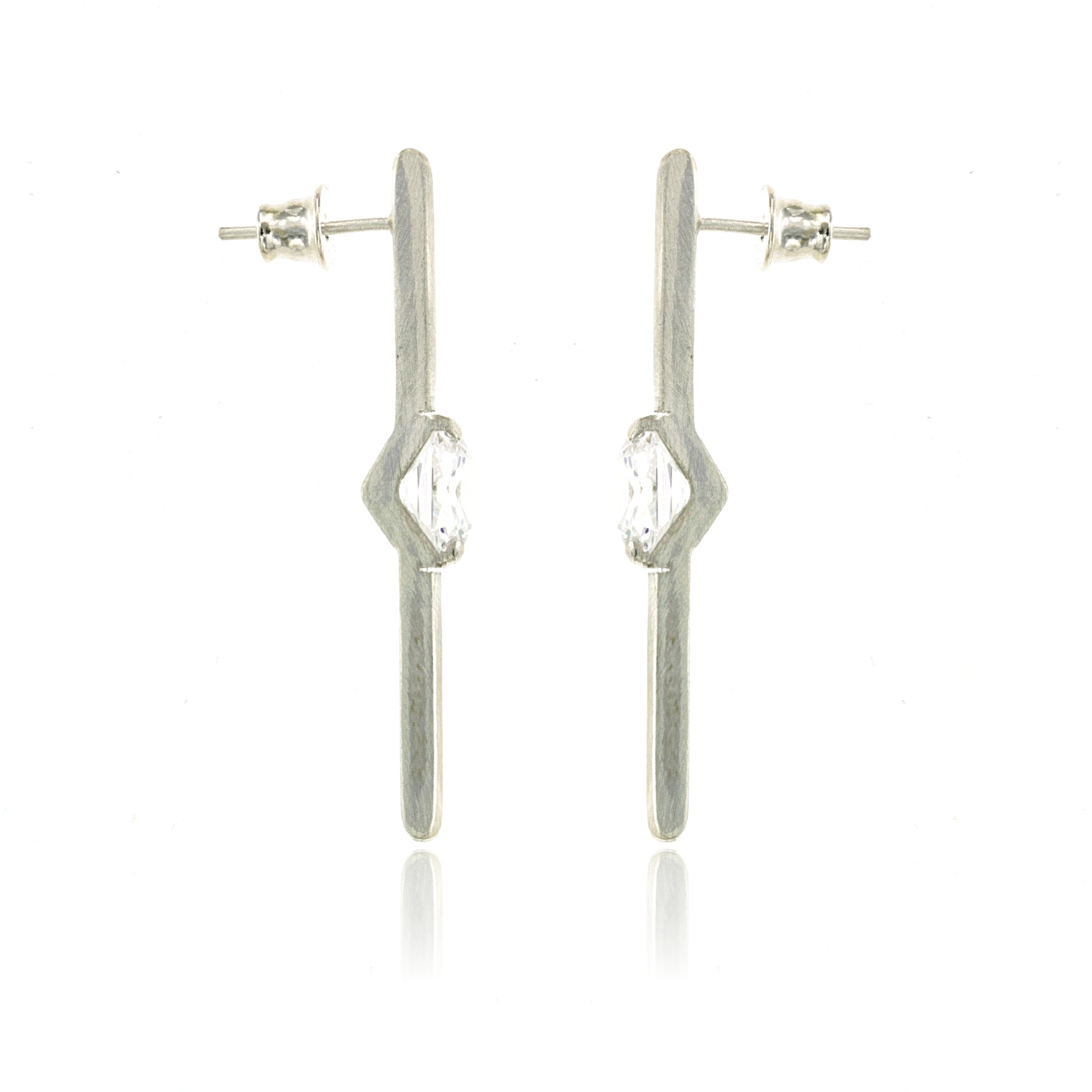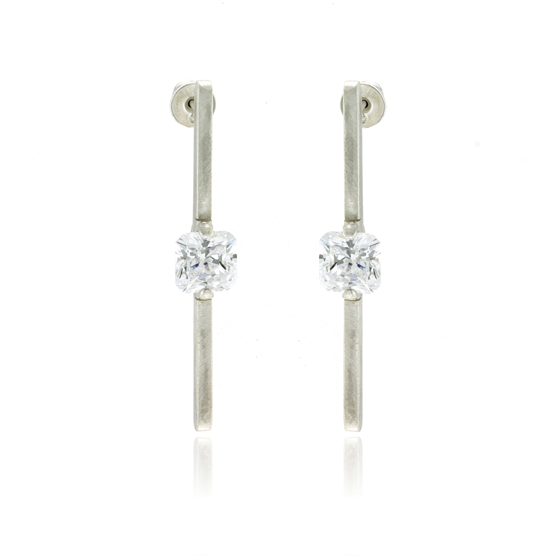 Sterling Silver 1 5/8" Post Rectangle Earrings with 7x7mm Clear Cubic Zirconia