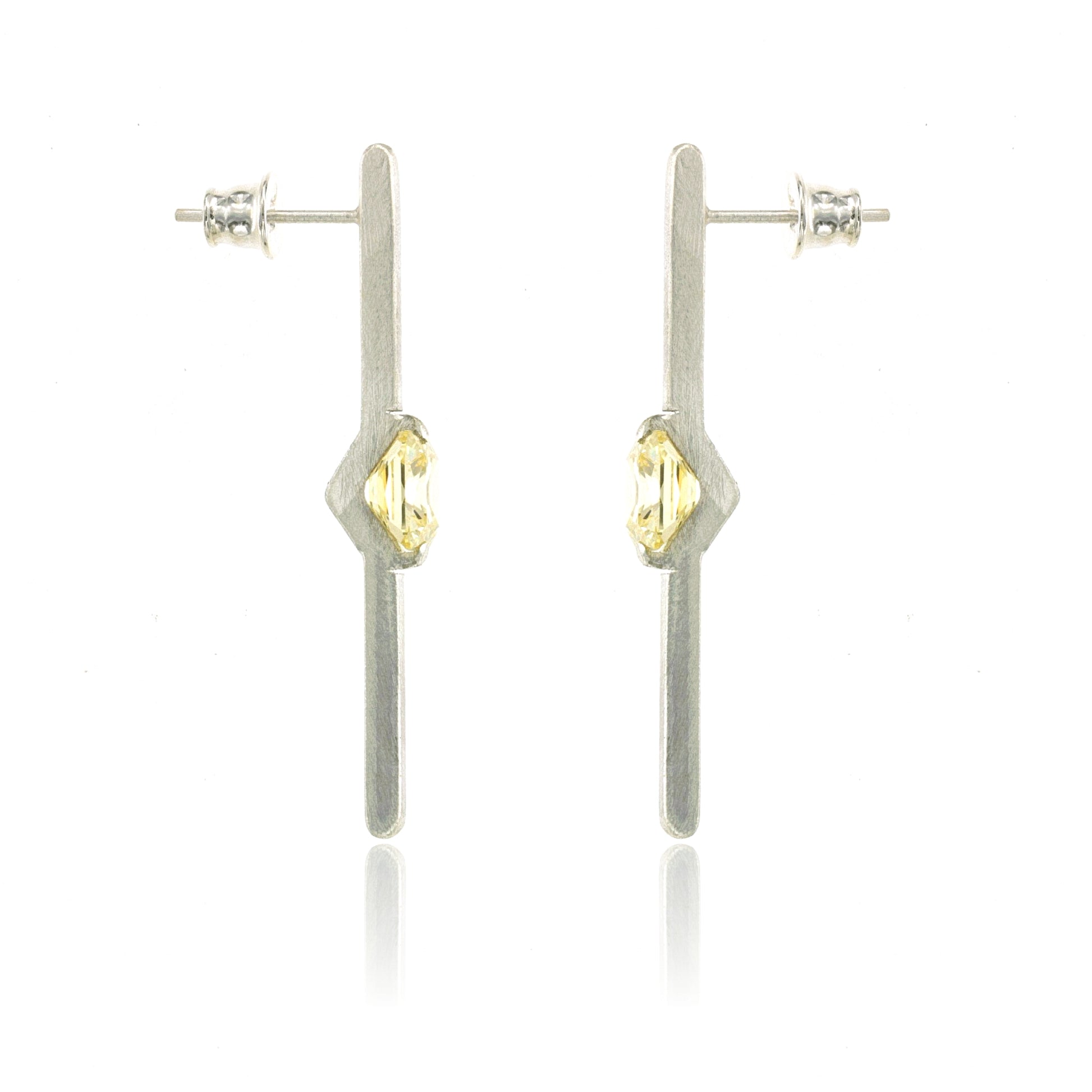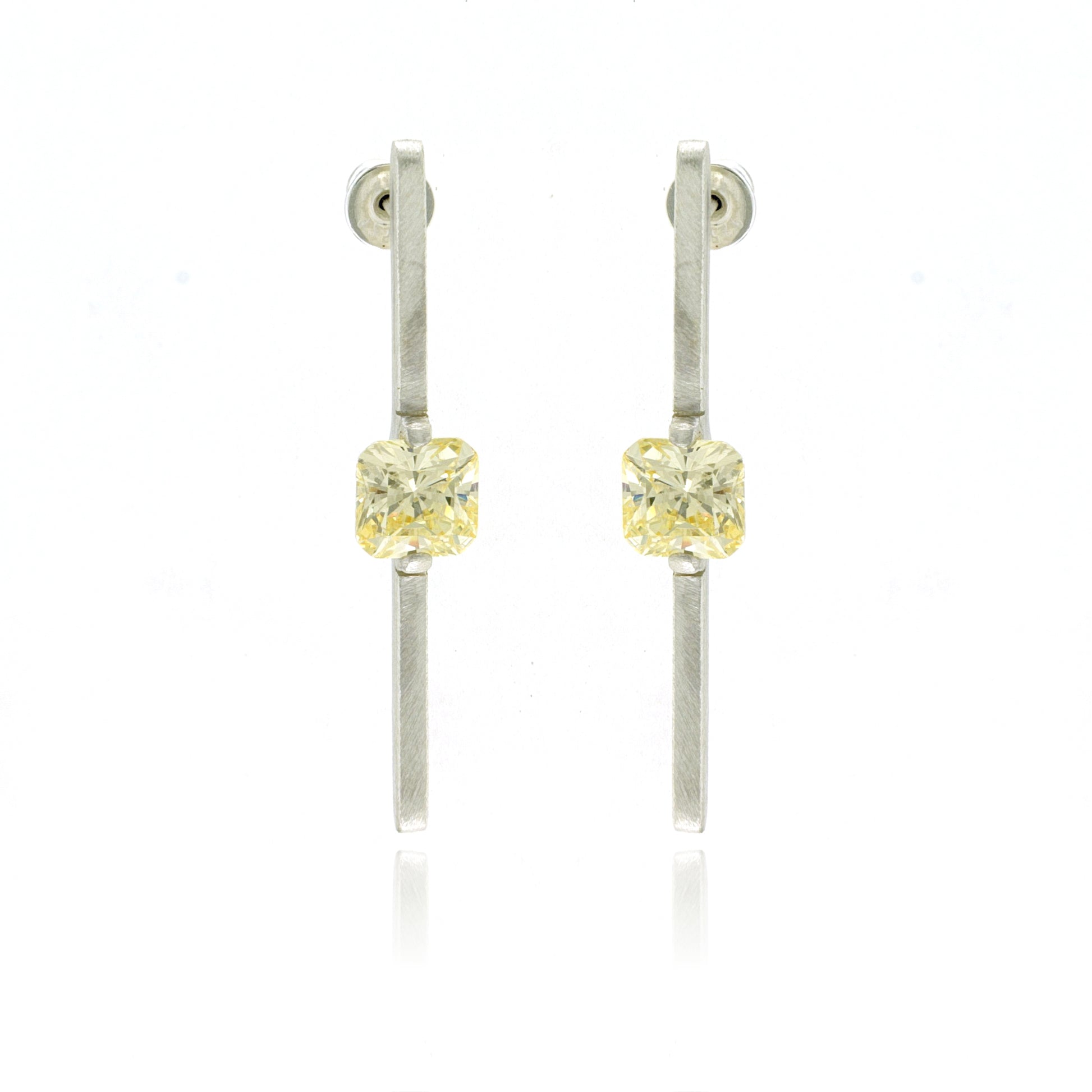 Sterling Silver 1 5/8" Post Rectangle Earrings with 7x7mm Yellow Cubic Zirconia