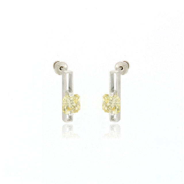 Sterling Silver 3/4" Post Rectangle Earrings with 7x7mm Synthetic Yellow Cubic Zirconia