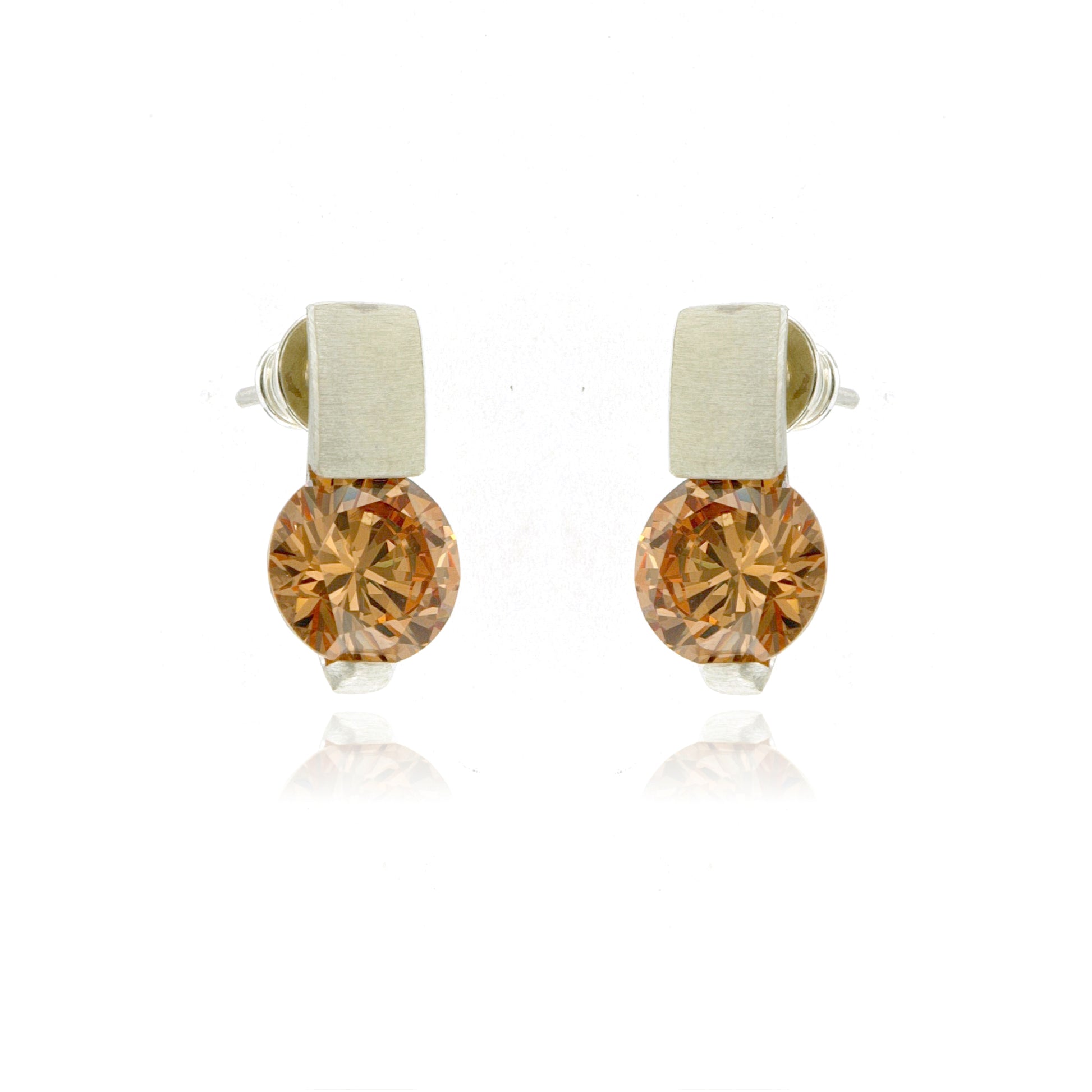 8mm Champagne Cubic Zirconia Sterling Silver Post Earrings