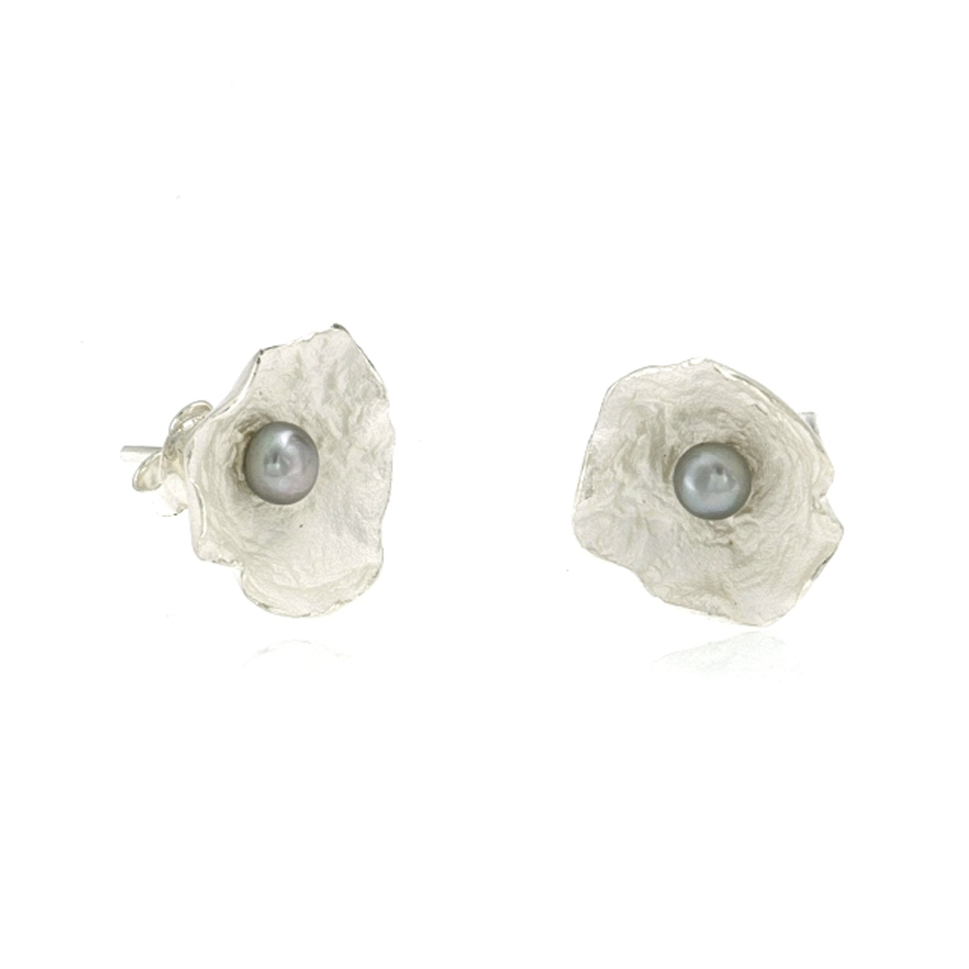 Sterling Silver Petals, with a gray freshwater pearl center.