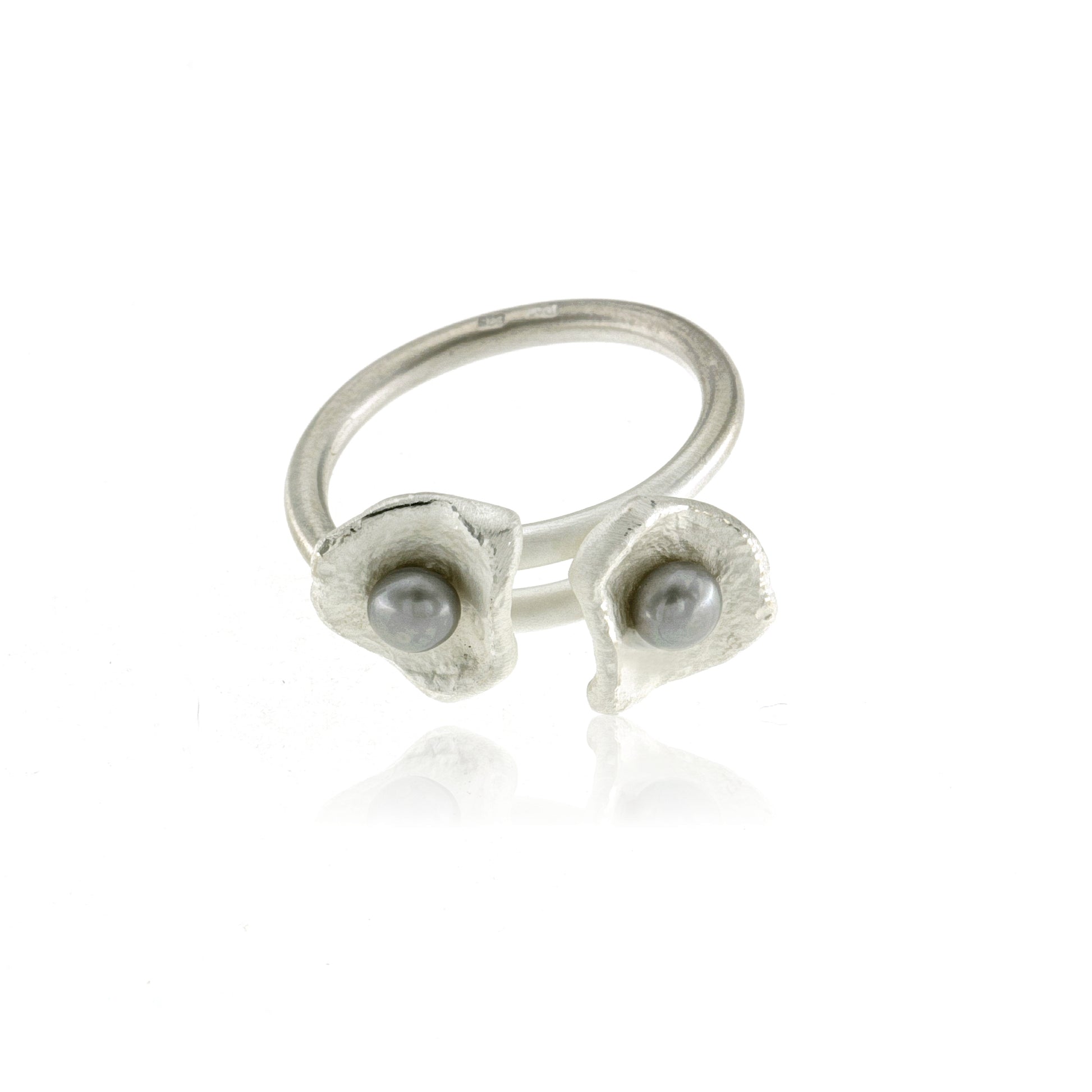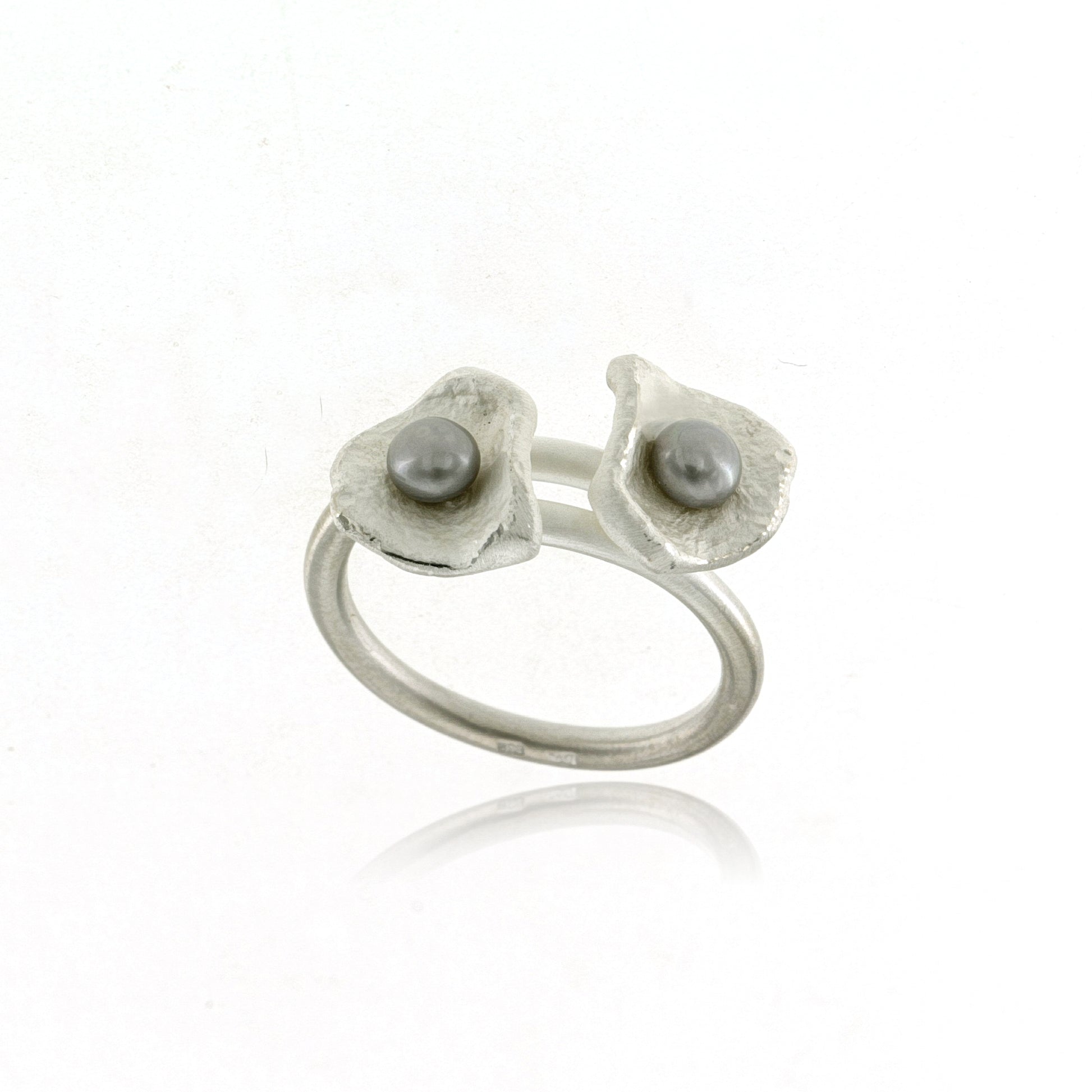 Sterling Silver wrapped petals with gray freshwater pearl centers