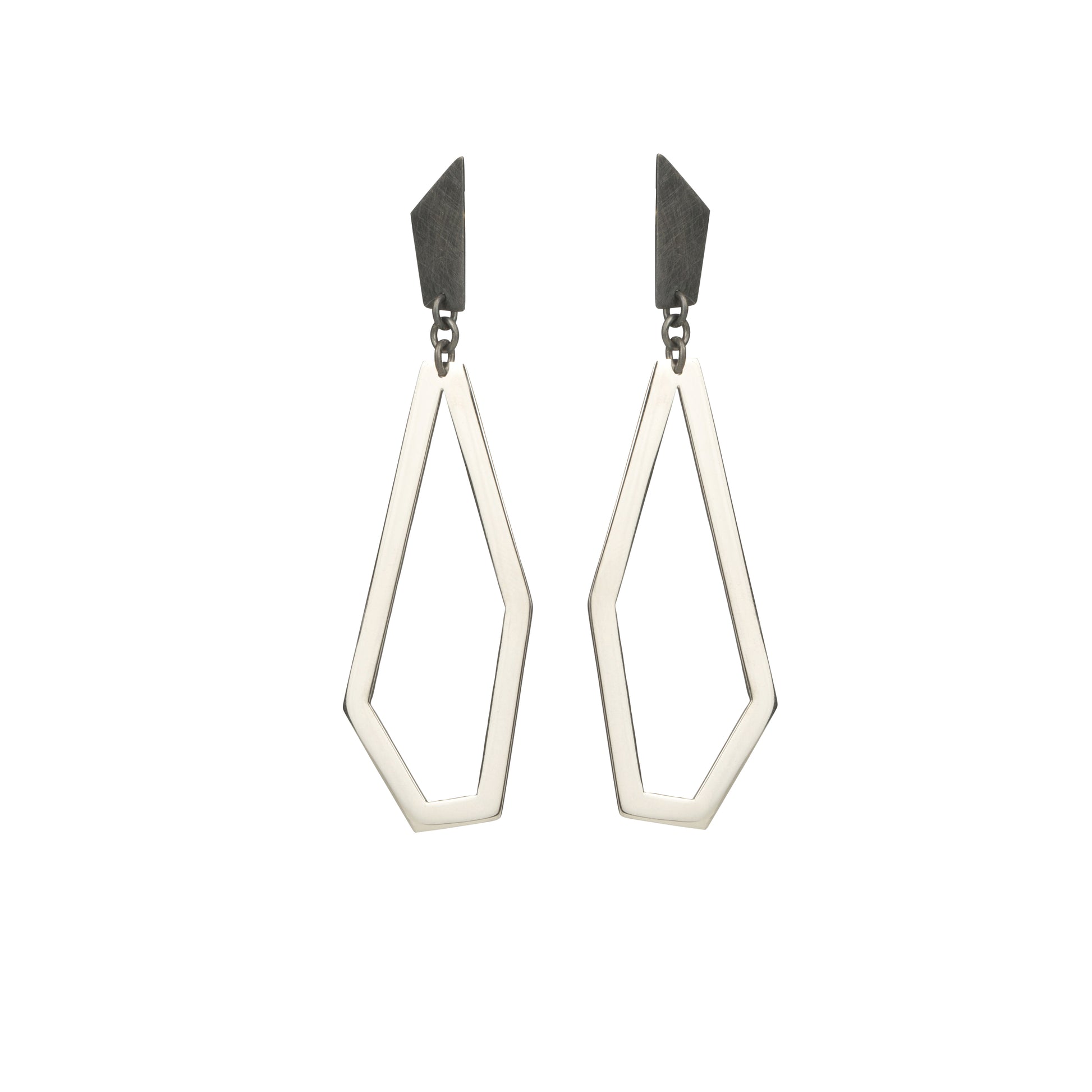 Oxidized Sterling Silver & Stainless Steel Geo Cutout Earrings with a Matte Finish
