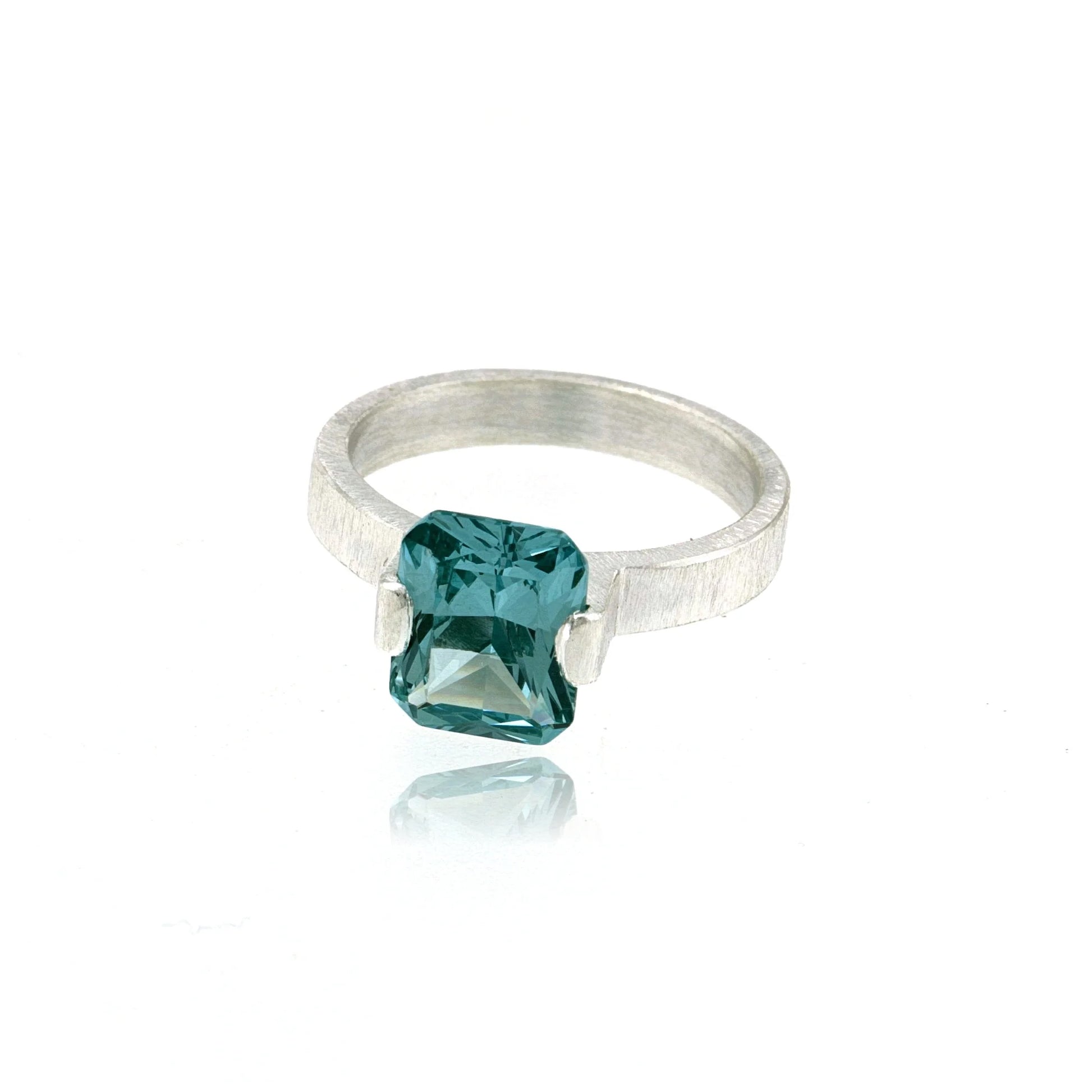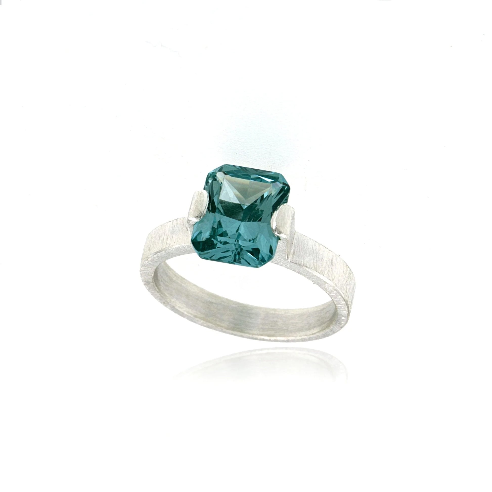 Sterling Silver textured ring with a tension set 8x10mm Synthetic Green Spinel