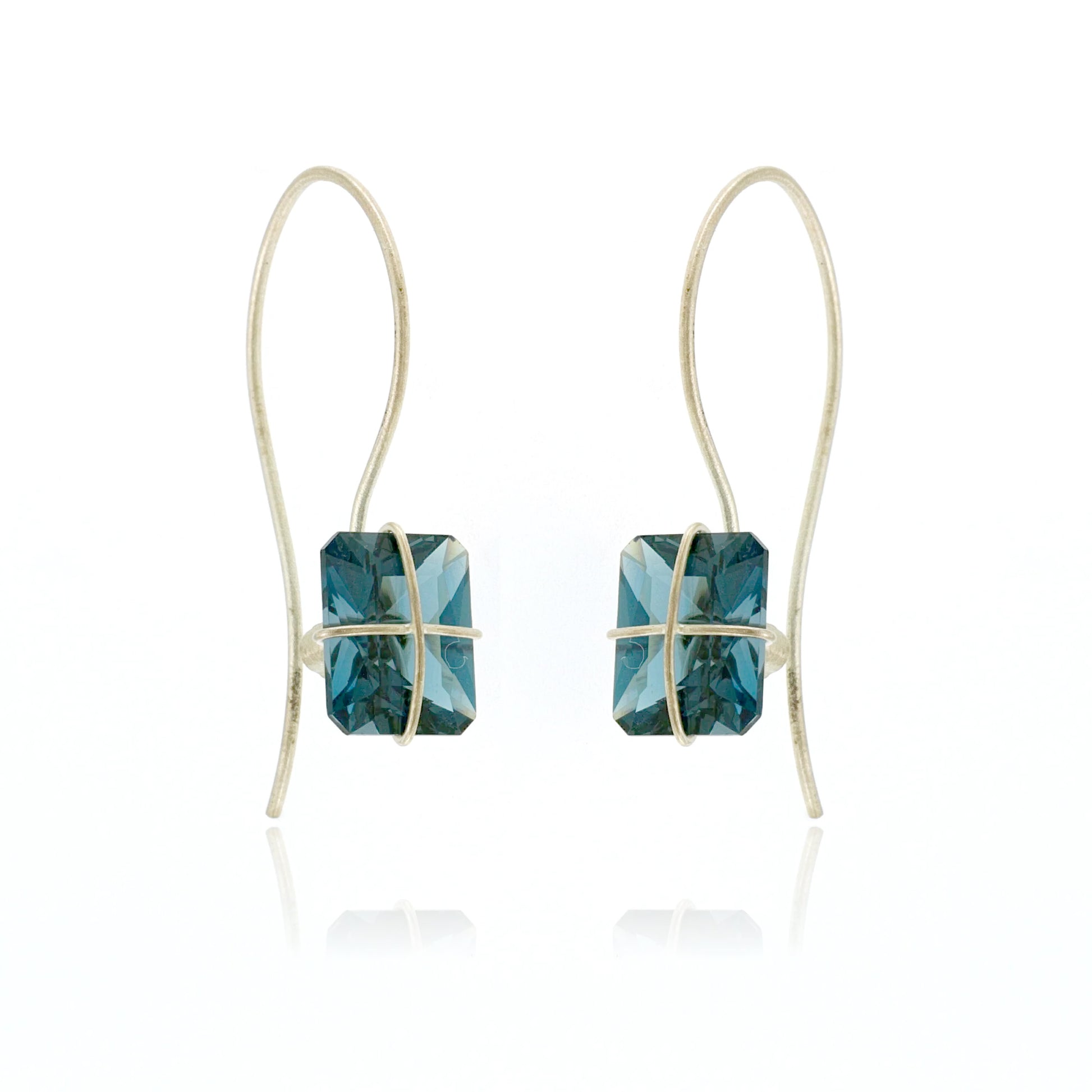 Sterling Silver 1.5" Threader Earrings with present-wrapped 8x10mm Genuine London Blue Topaz