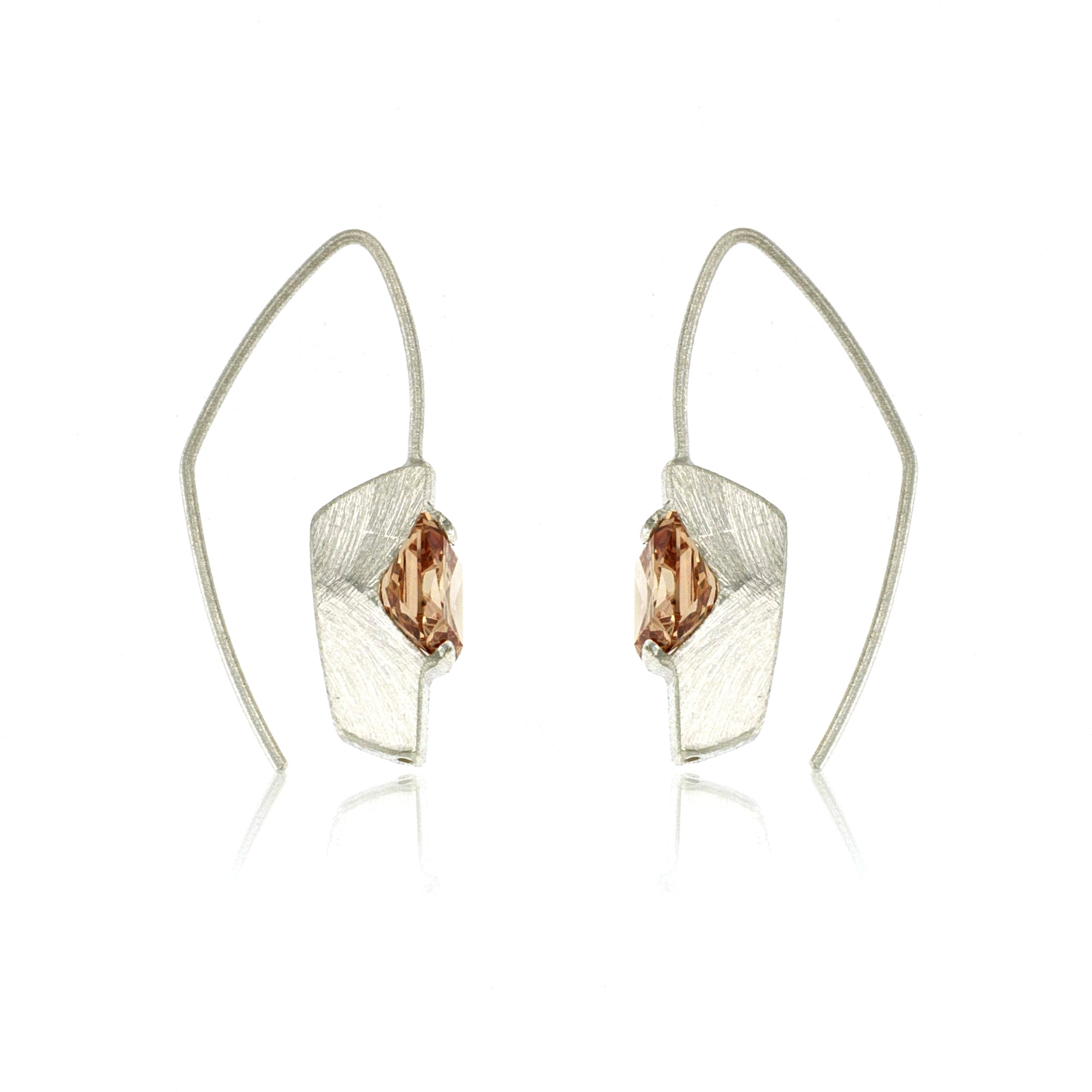 Sterling Silver 1 1/8" Threader Earrings with 7x7mm Champagne Cubic Zirconia