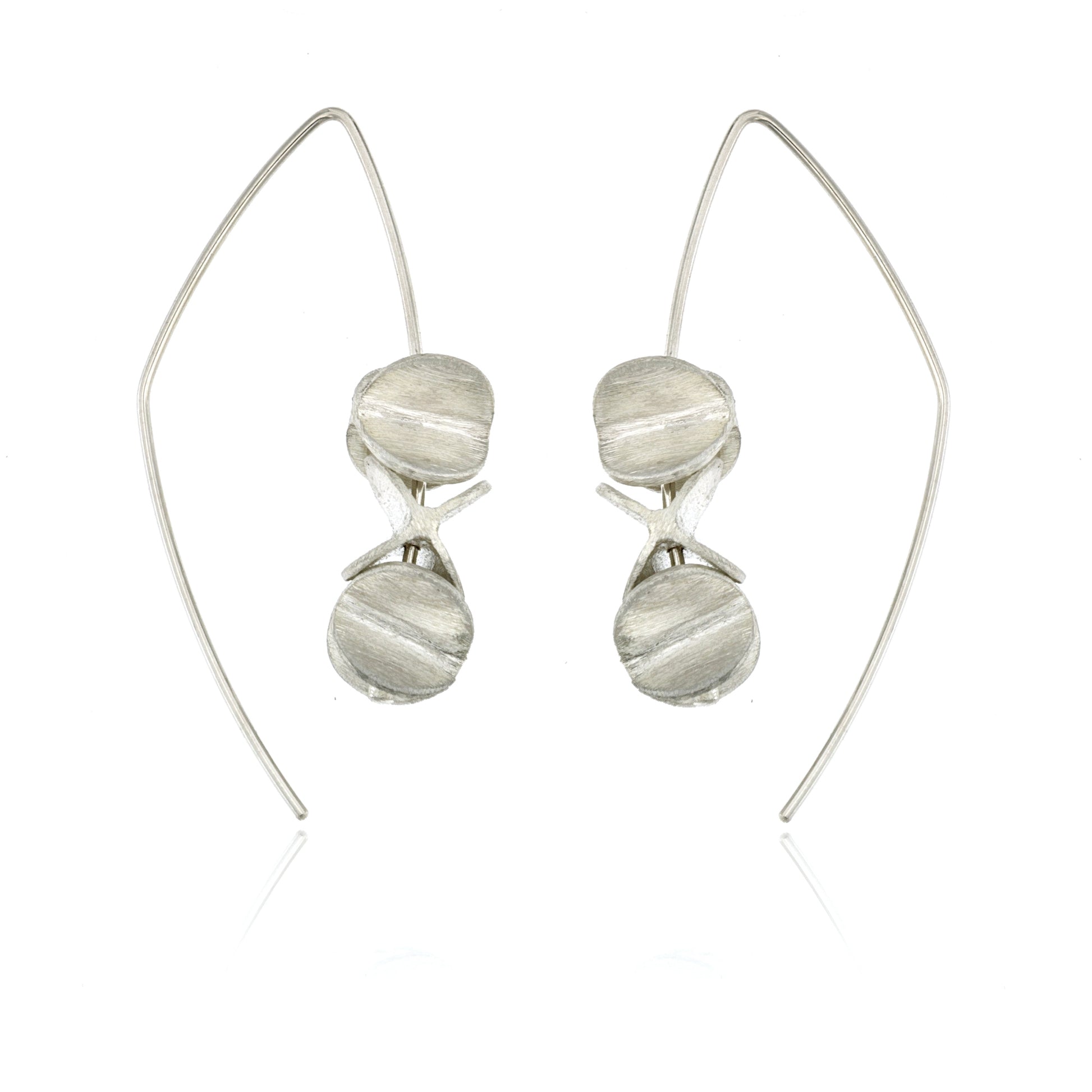 Sterling Silver 1.75" Threader Earrings with spinning ovals