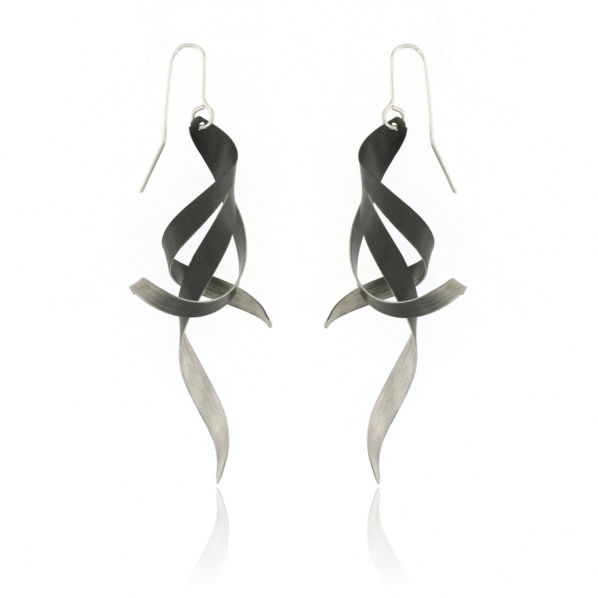 Oxidized sterling silver twisted ribbons on ear wires, with a beautiful textured finish.