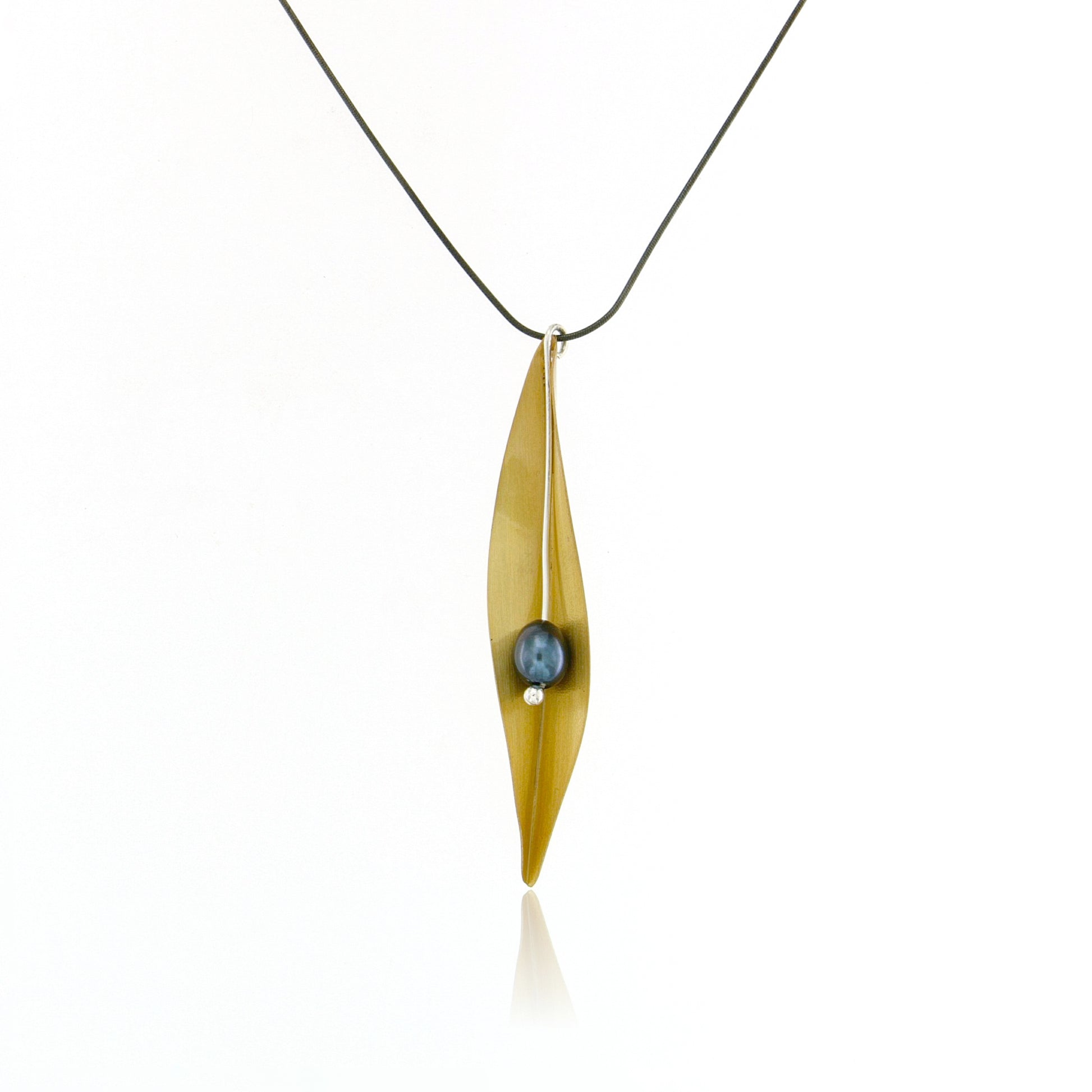 Gold-plated and sterling silver long double petal with a black freshwater pearl and a beautiful finish.
