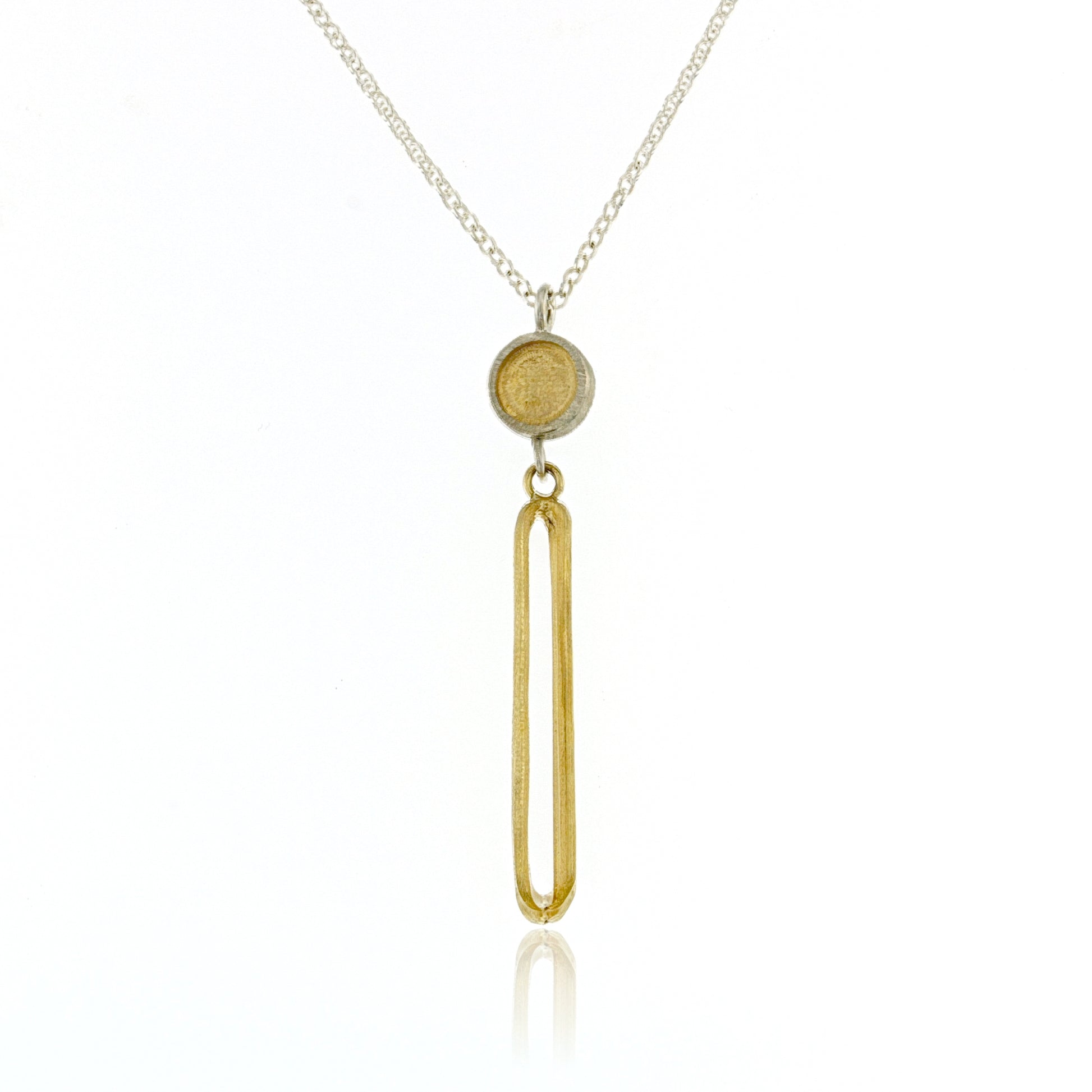 Sterling Silver & Vermeil dot hanging from a Vermeil oval on a silver chain.