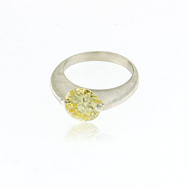 Sterling Silver Yellow Cubic Zirconia ring, tension style, with a shiny textured finish.