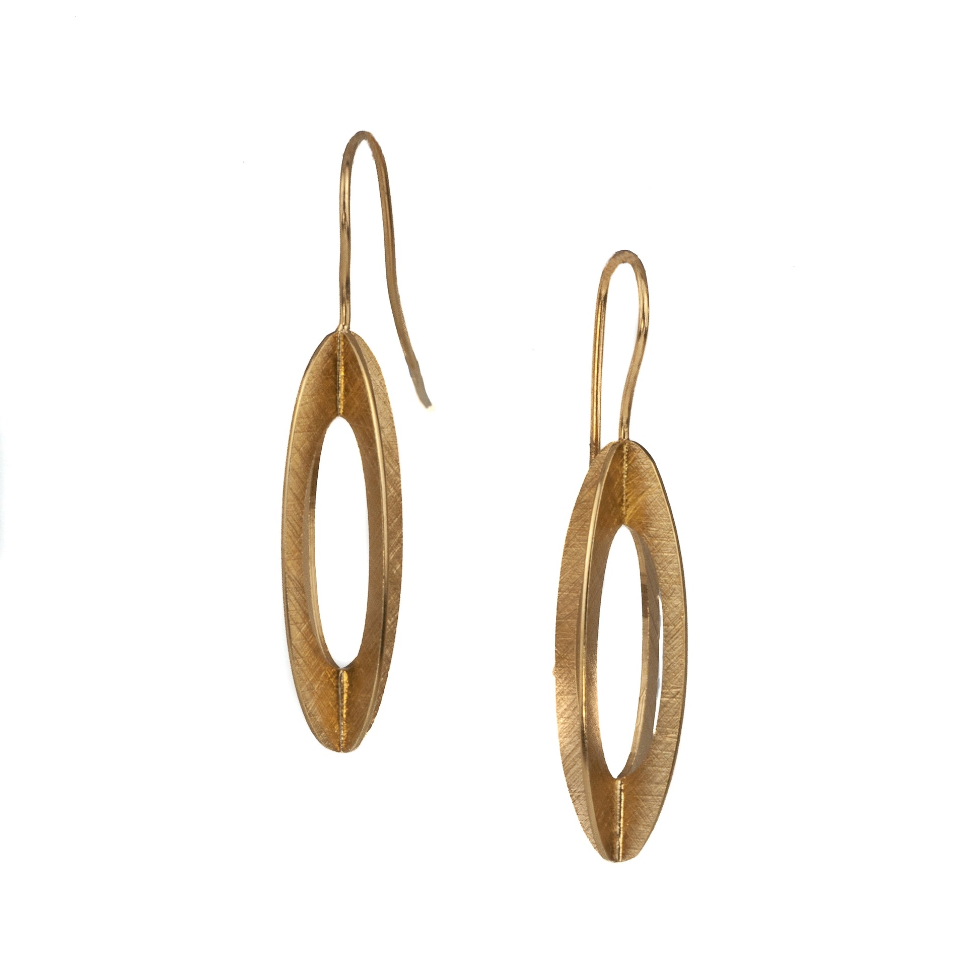 Textured and sculptural Vermeil marquise shapes, with stationary ear wires.