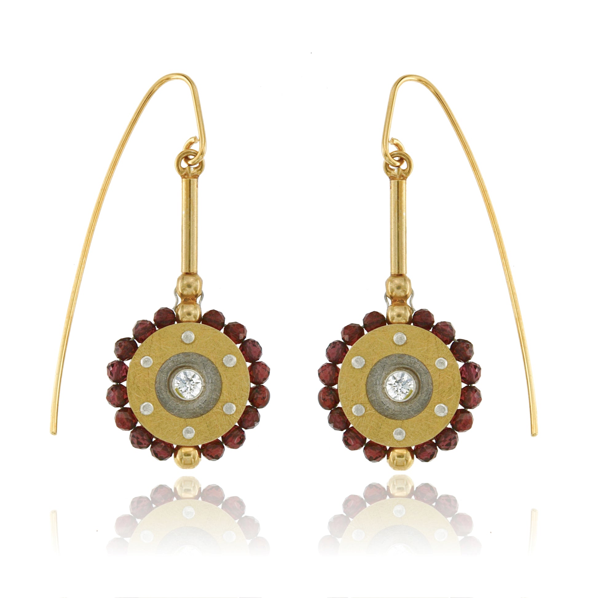 Gold-Plated Sterling Silver Garnet Earrings with center cubic zirconia