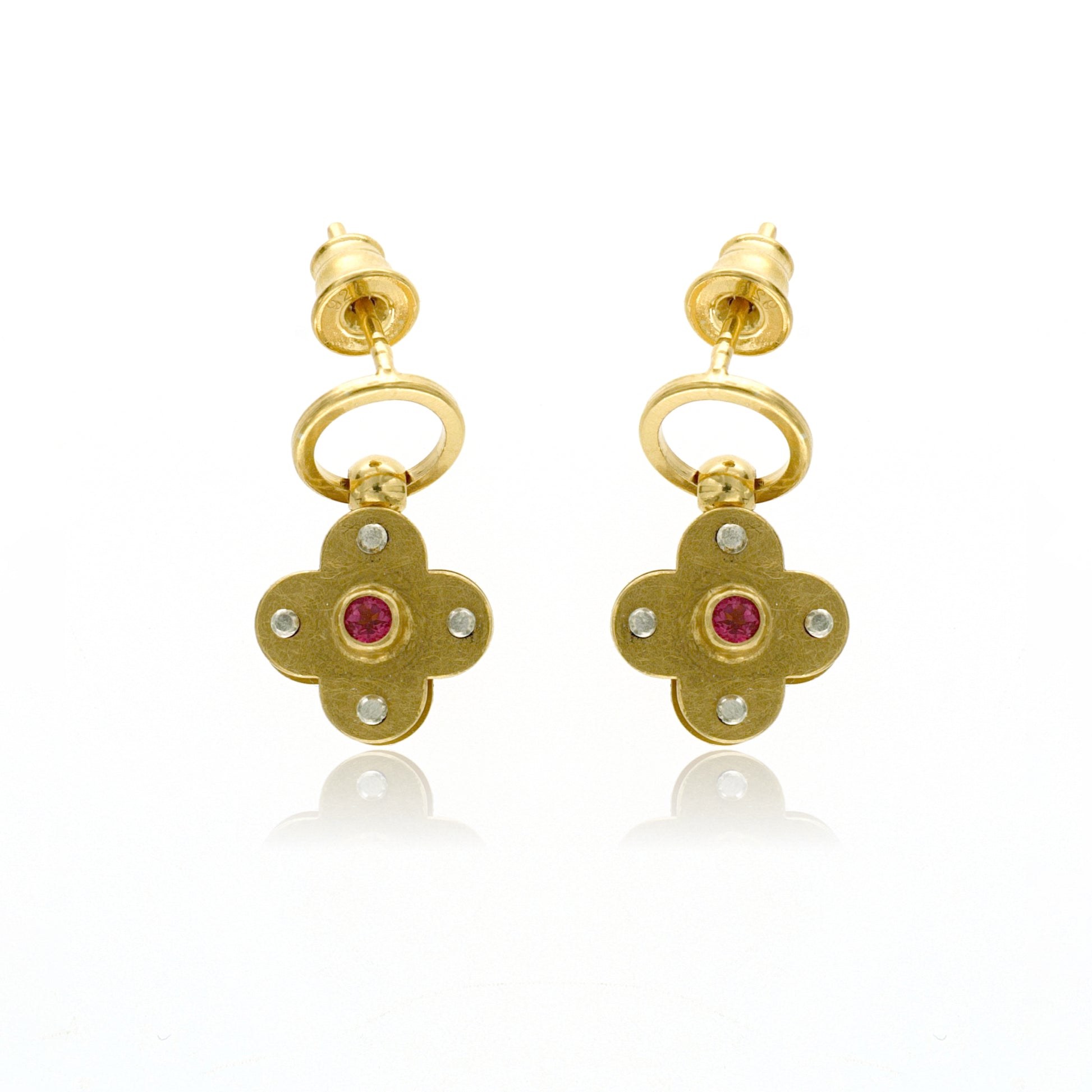Gold-Plated Sterling Silver Moroccan Quatrefoil Charm Earrings with Pink Topaz centers