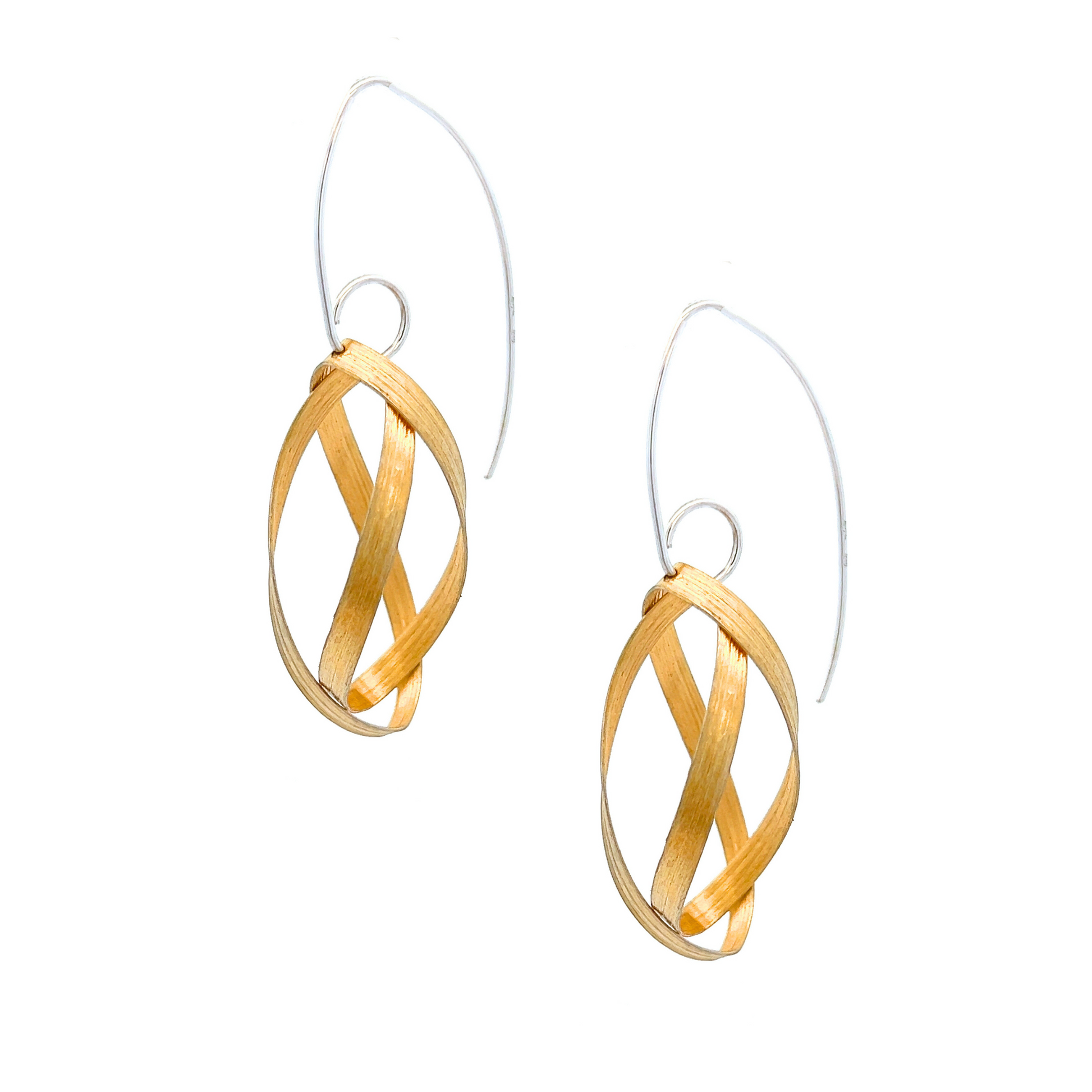 Sterling Silver vermeil textured oval ribbons on wires.