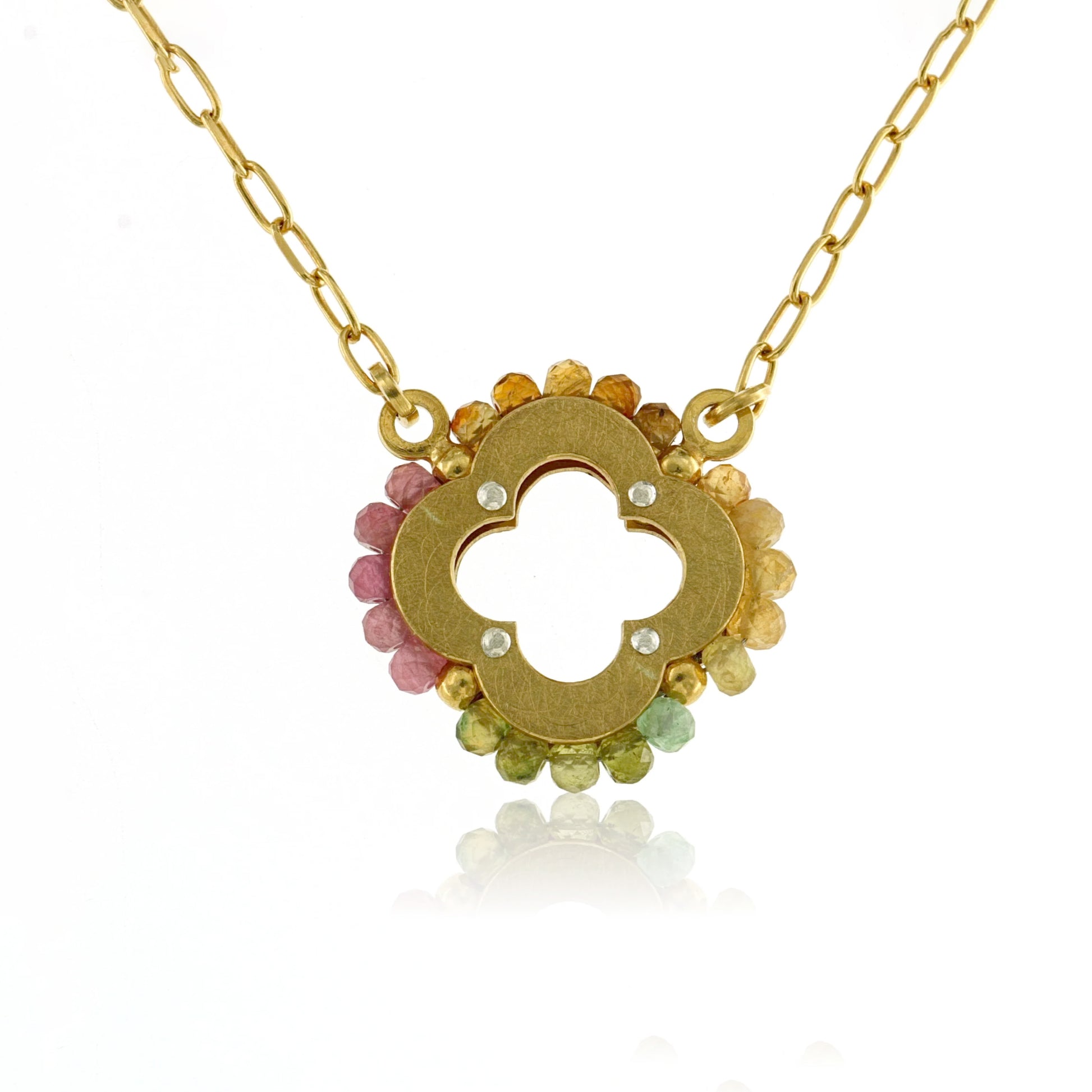 Mysterium Collection Gold-Plated Sterling Silver Tourmaline Moroccan Quatrefoil Charm on a 20" Chain