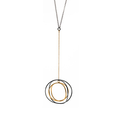 Gold Plate & Oxidized Sterling Silver Wavy Circle Pendant