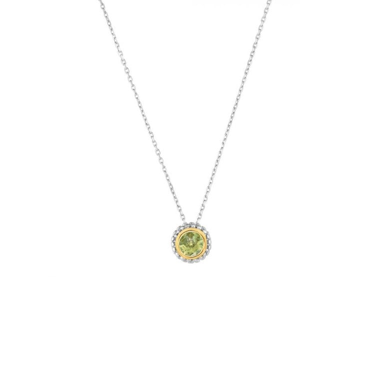 Sterling Silver Rhodium-Plated & 18K Gold 5mm Round Peridot Pendant