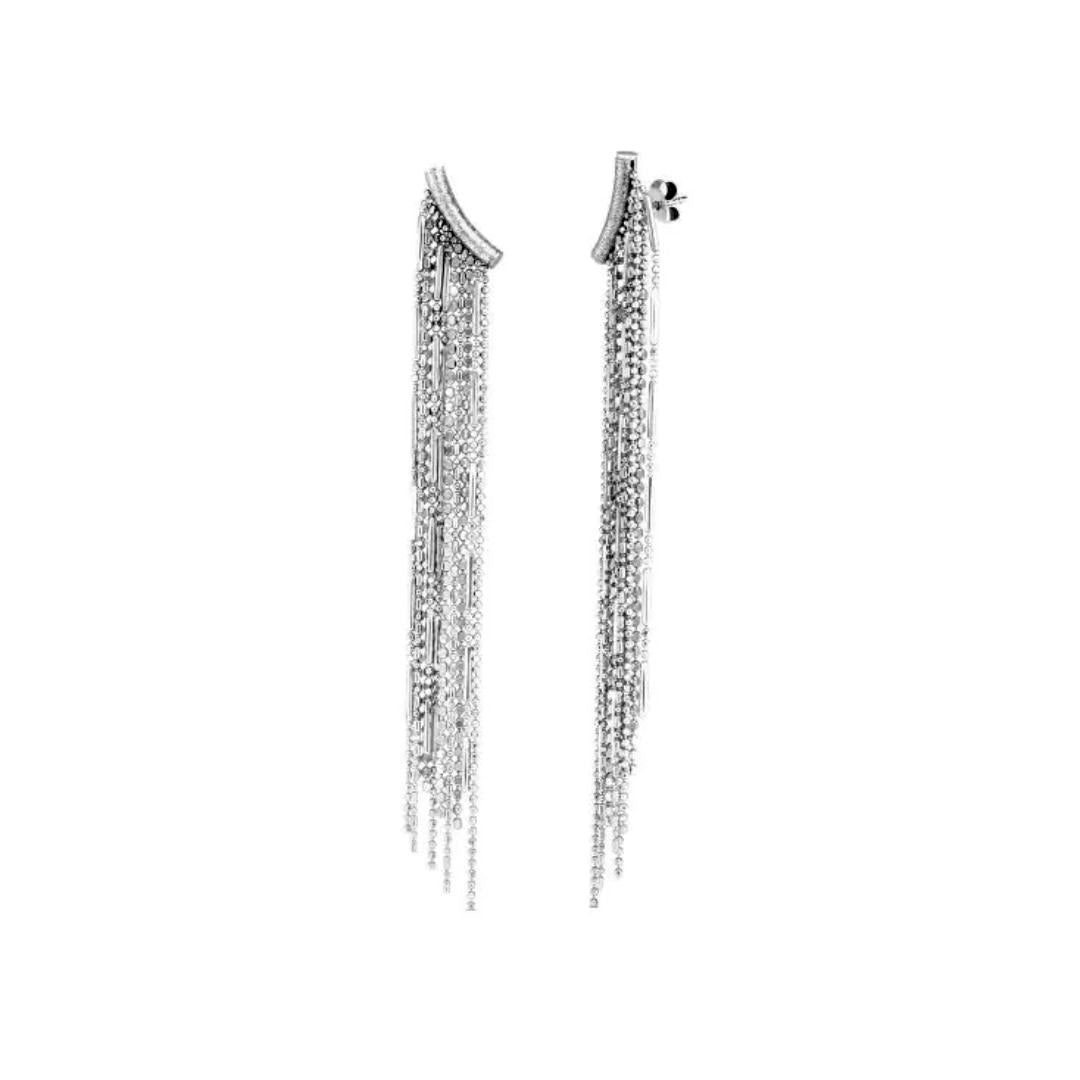 Sterling Silver Curved Bar Shoulder Duster Fringe Dangle Earrings