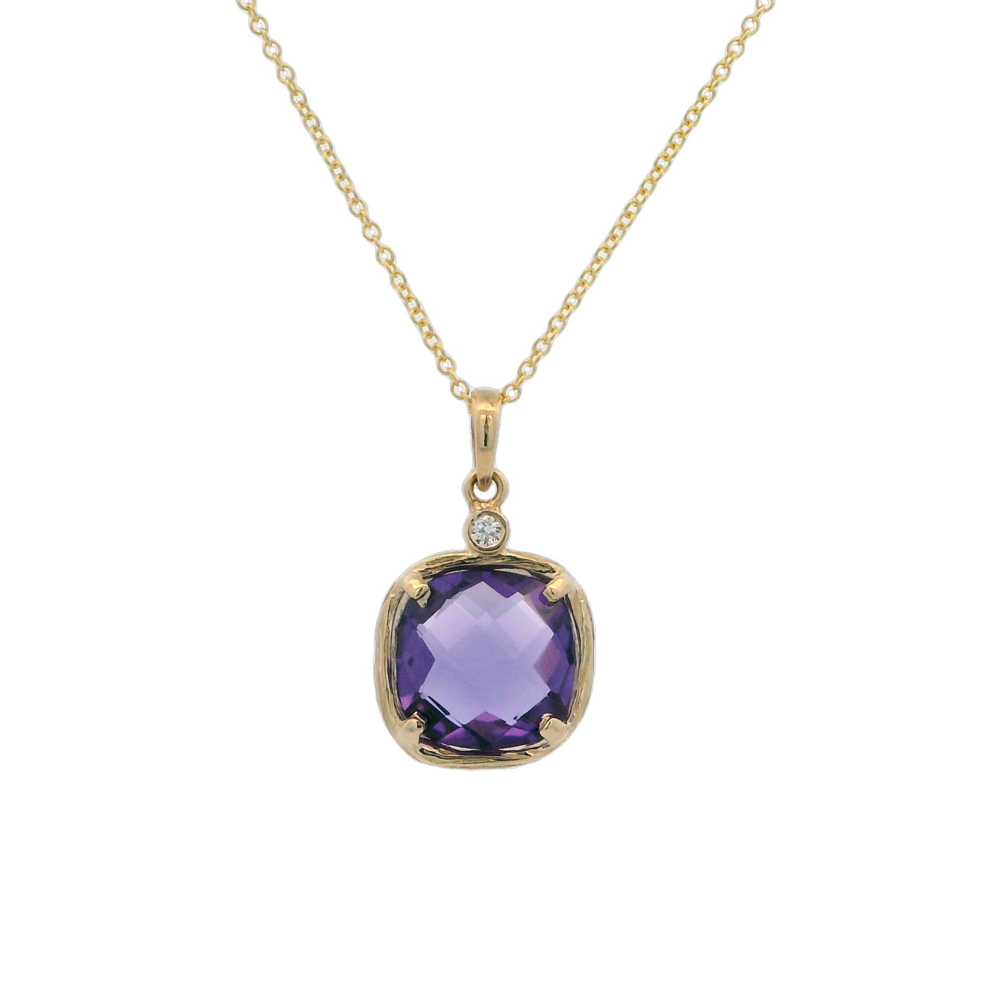 14K Yellow Gold, 10mm Amethyst, .03 ct Diamond accent.