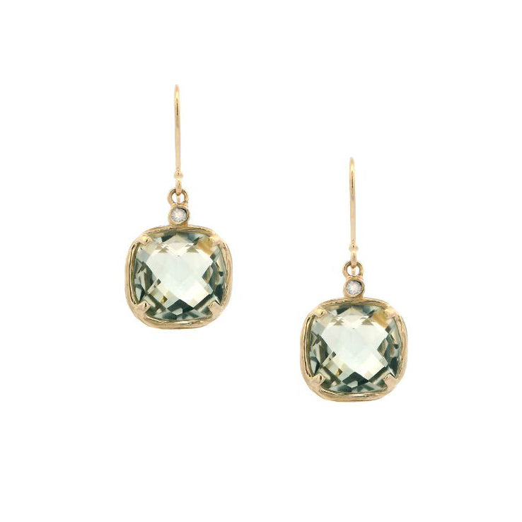 Riverbend Collection Yellow Gold Green Amethyst Earrings (sm)