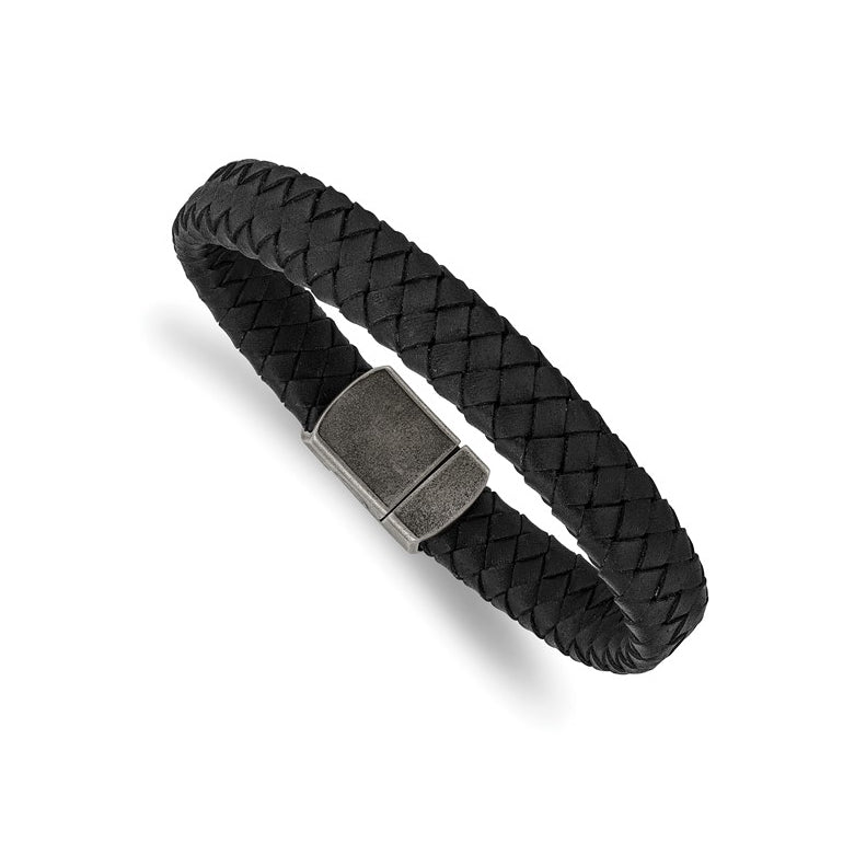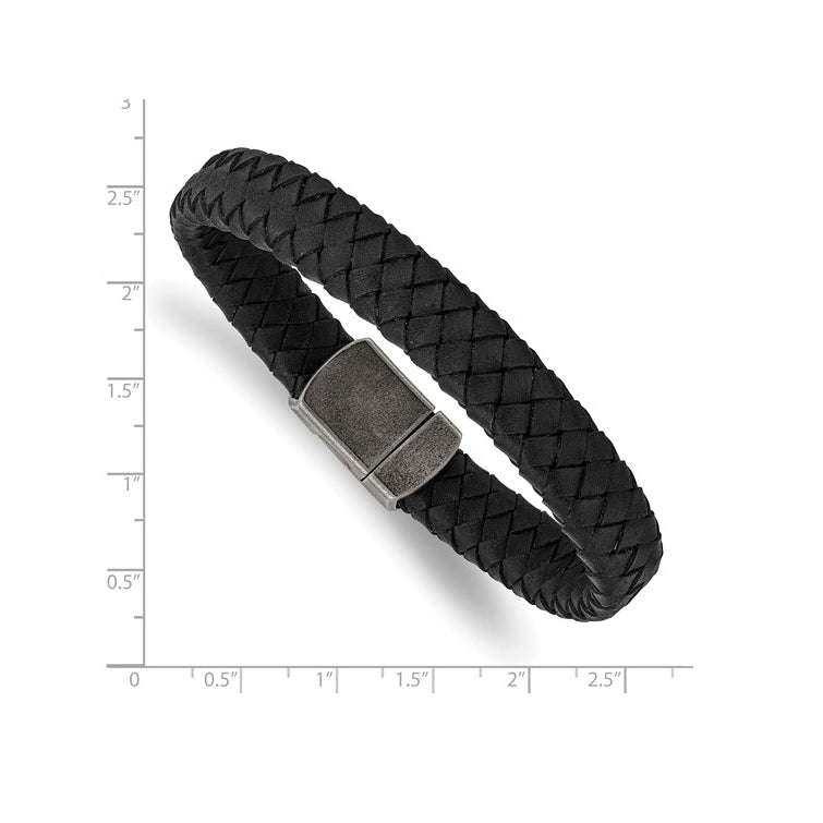 Stainless Steel Antiqued Black Braided Leather Bracelet