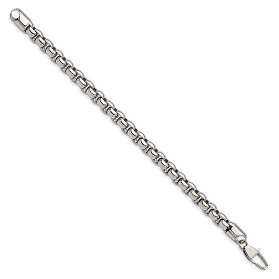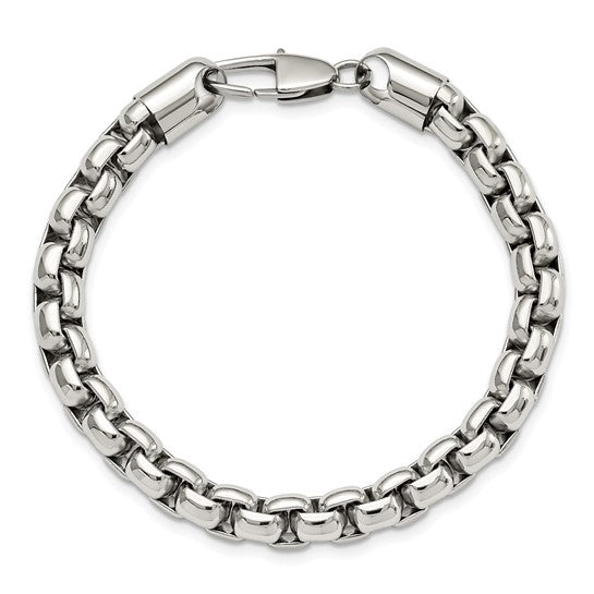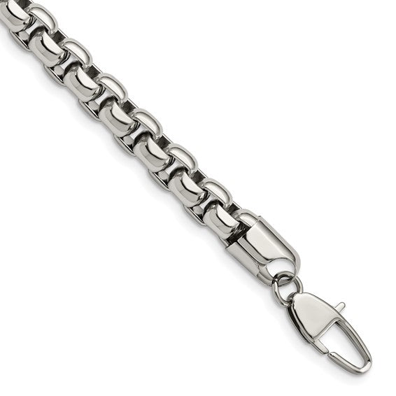 Stainless Steel Polished 9" Men's Rounded Box Bracelet
