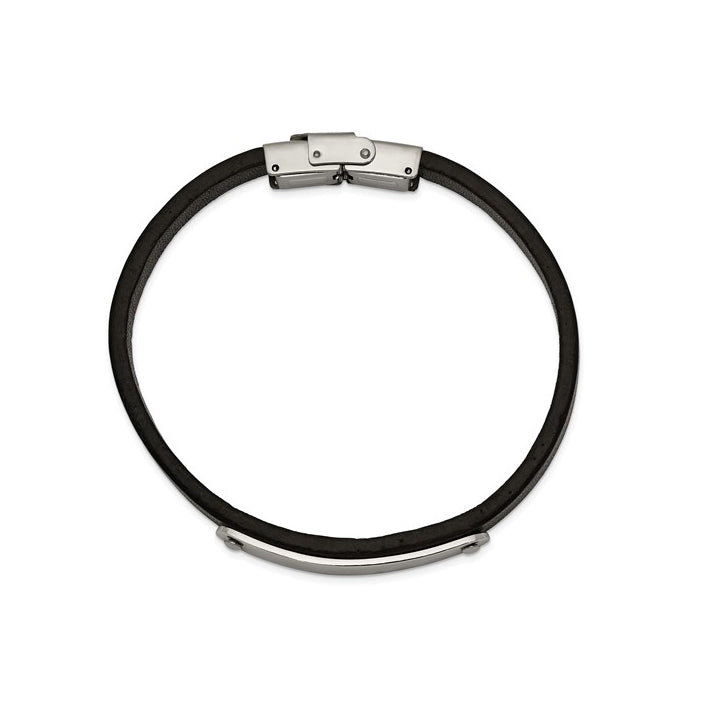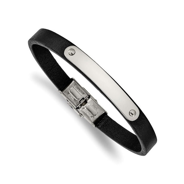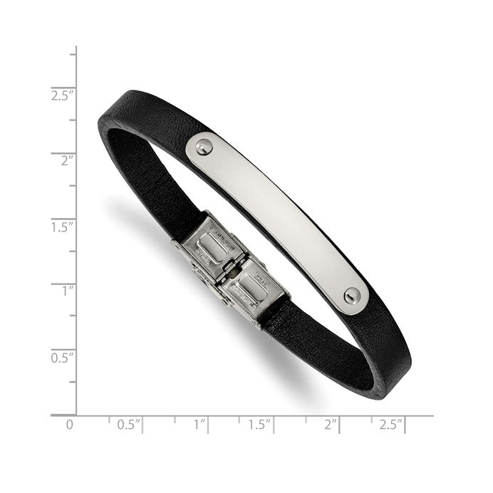 Stainless Steel Polished Black Leather ID Men's Bracelet