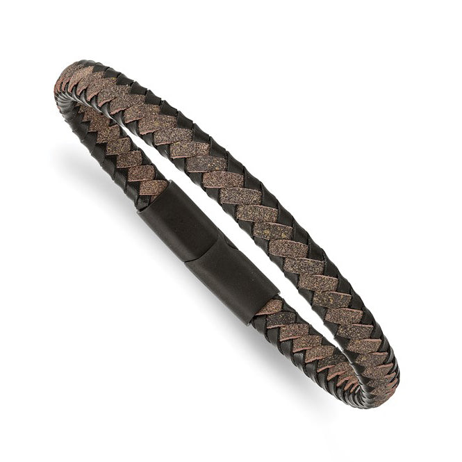 Stainless Steel IP-Plated Black & Brown Braided Leather Men's Bracelet