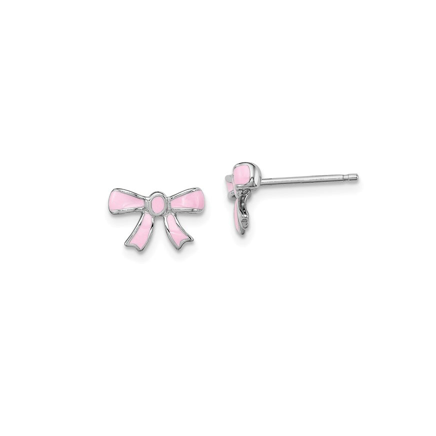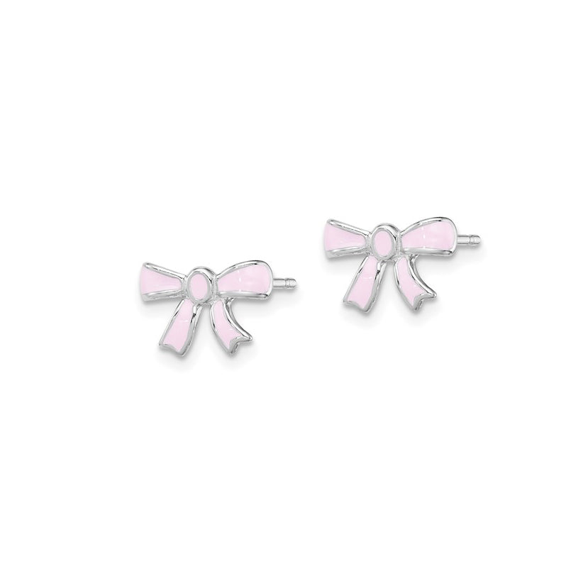 Sterling Silver Rhodium-Plated Petite Pink Enameled Bow Post Earrings