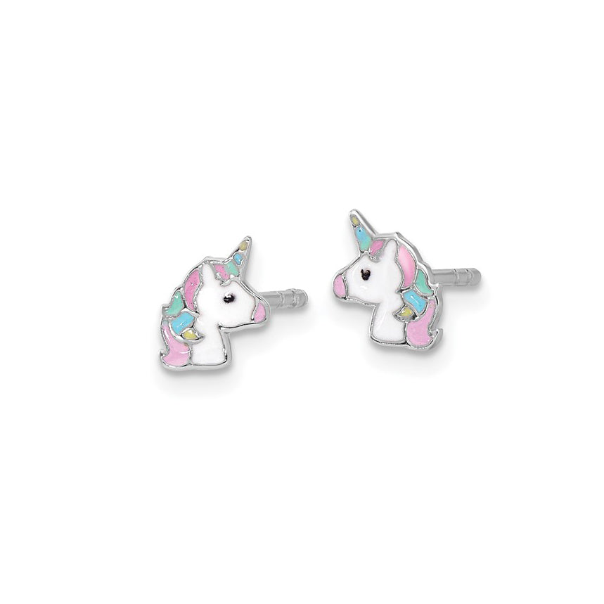 Sterling Silver Rhodium-Plated Petite Enameled Unicorn Post Earrings