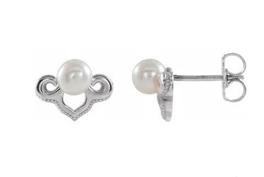 Sterling Silver elegant post earrings, featuring Cultured Pearls and an open design.