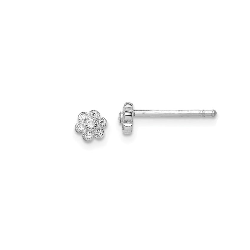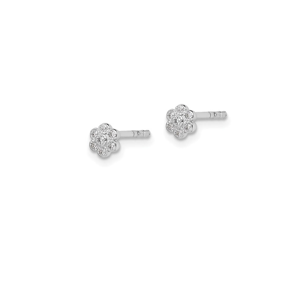 Sterling Silver Rhodium-Plated Petite Flower Post Earrings with Cubic Zirconia Accents