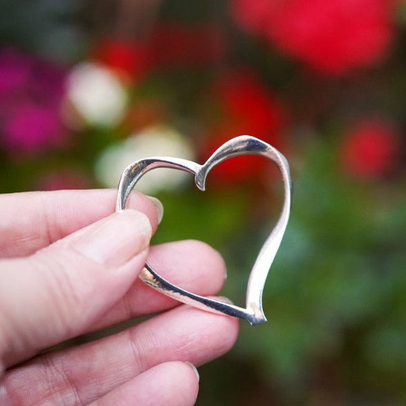 The Big Open Heart is a playful and elegant way of showing the world your love. Wear the pendant on your favorite chain or order one of our super long and skinny scarves. The satin soft ribbon can be worn in a loop like a scarf, tied with a big bow at the nape of your neck, or used as a sash around your waist. There is no limit to the ways you can wear your heart. Have fun! Designed and Handcrafted in New Orleans, Louisiana.