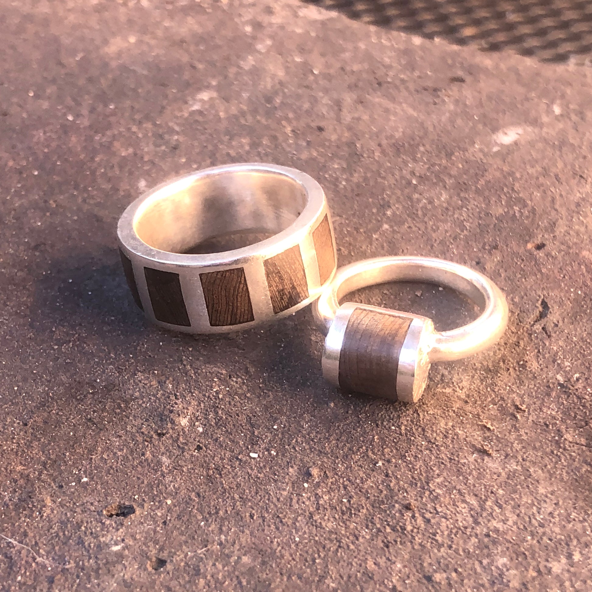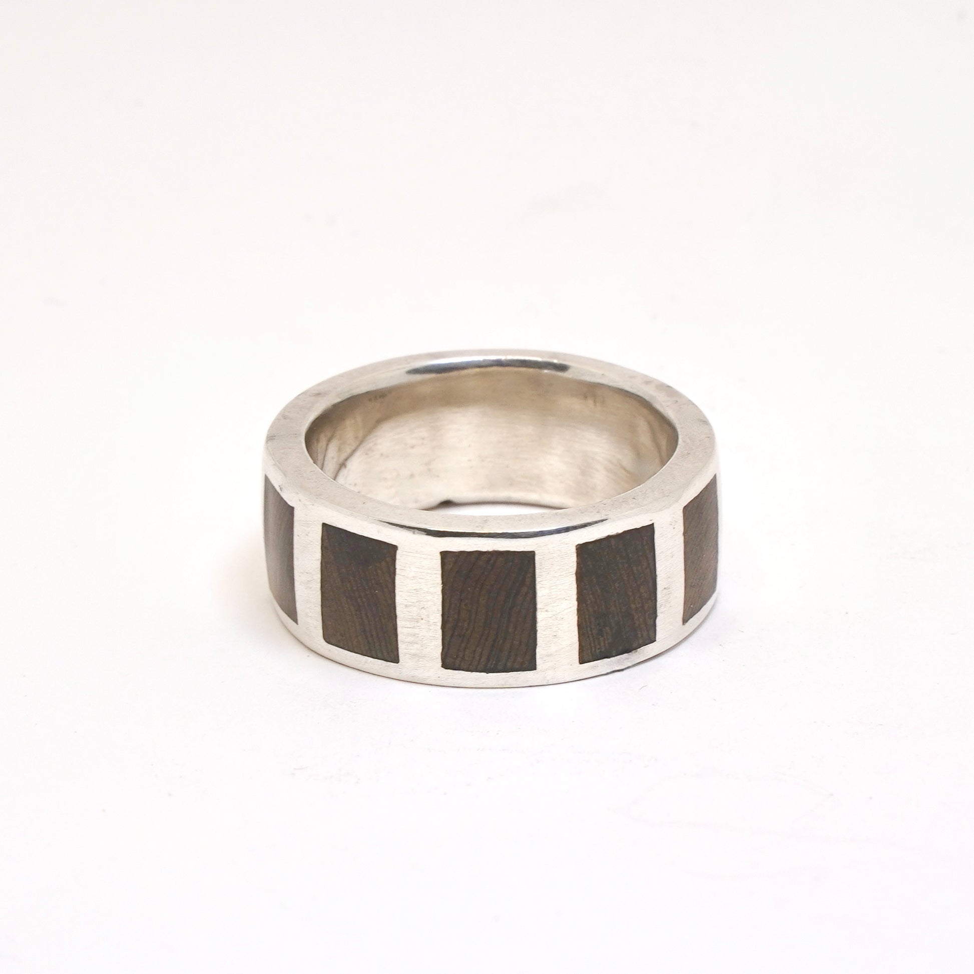 Sterling Silver with 5 panels of Cypress going halfway around the band.