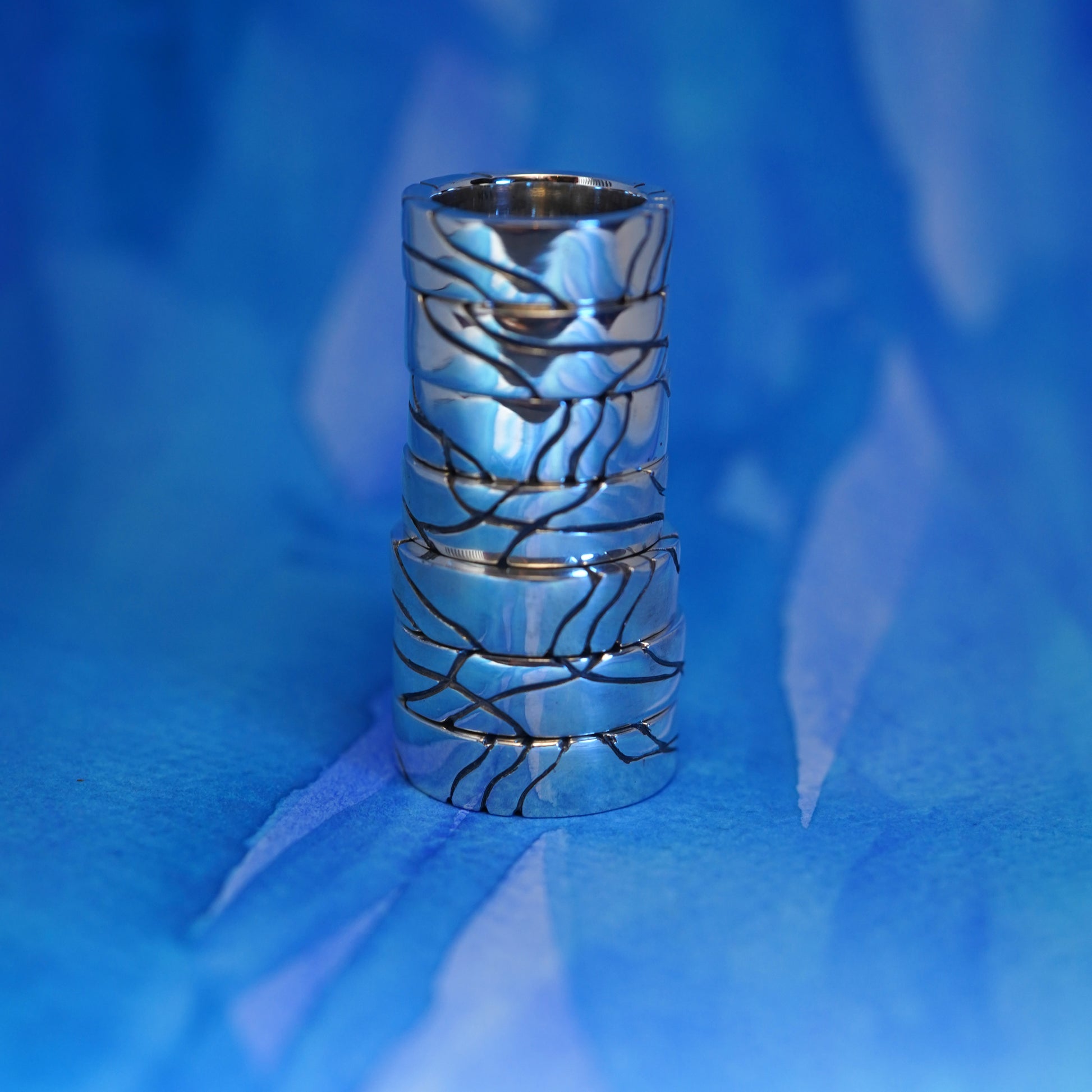 This ring features a squared profile and an engraved design that evokes an art deco style that is as timeless as the tides. Lines flow around the ring and into your finger as a reminder of your connection with all things. It has a comfortable beveled inside for everyday wearability. A unique wedding ring representing the flow of time and intertwined lives. Designed and Handcrafted in New Orleans, Louisiana.