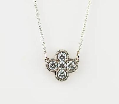 Tom Mathis Designs 14K White Gold Diamond Clover Necklace