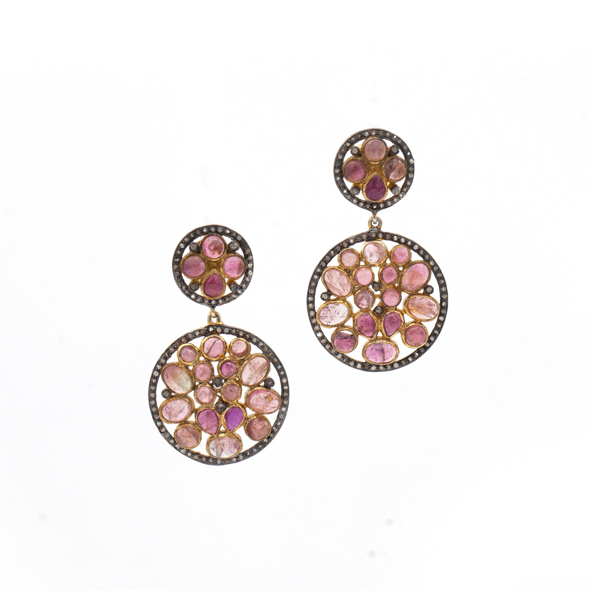 Vermeil Pink Tourmaline & Diamond Slice Earrings